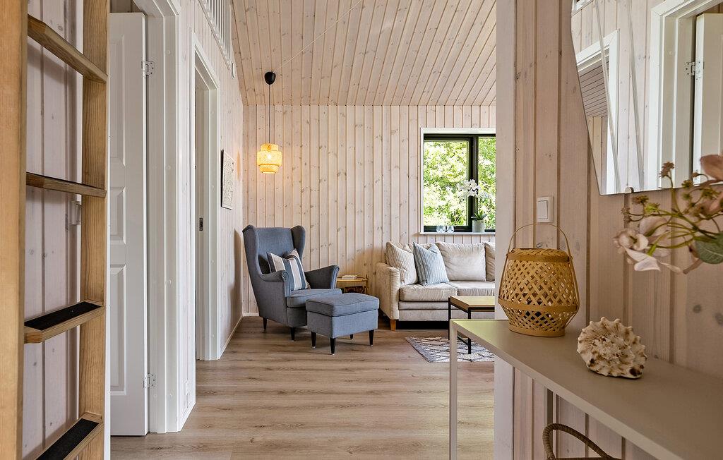 Velkommen til Skovmose på Als, hvor dette dejlige sommerhus byder jer indenfor. Hvad enten I er oppe på hemsen, ude på terrassen med udsigt til haven, i vildmarksbadet eller i den åbne stue - alle elementer af indretningen udstråler en hyggelig atmosfære, der vil få jer til at føle jer hjemme.
