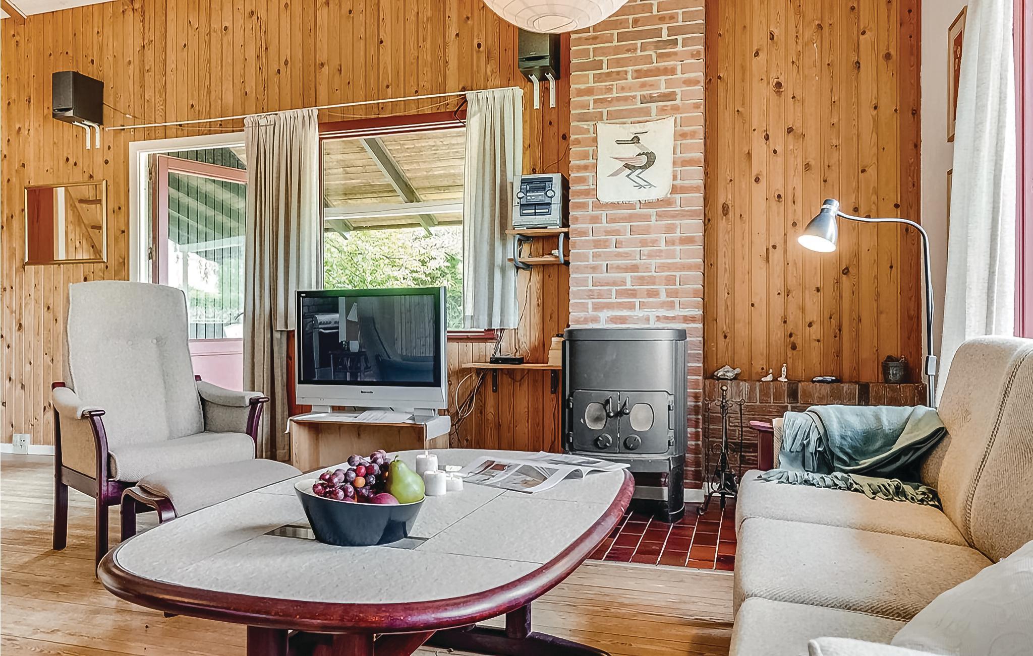 Charmerende feriehus nær Skovmose strand med brændeovn og overdækket terrasse til afslapning.