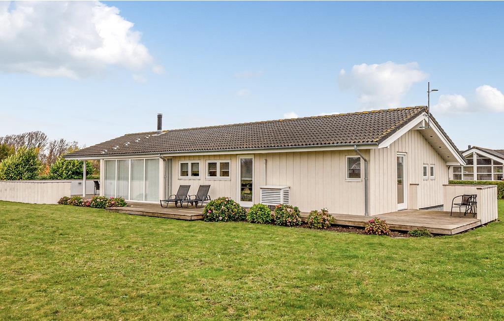 Feriehus i Skovmose Strand med sauna, jacuzzi og smuk udsigt over det grønne.