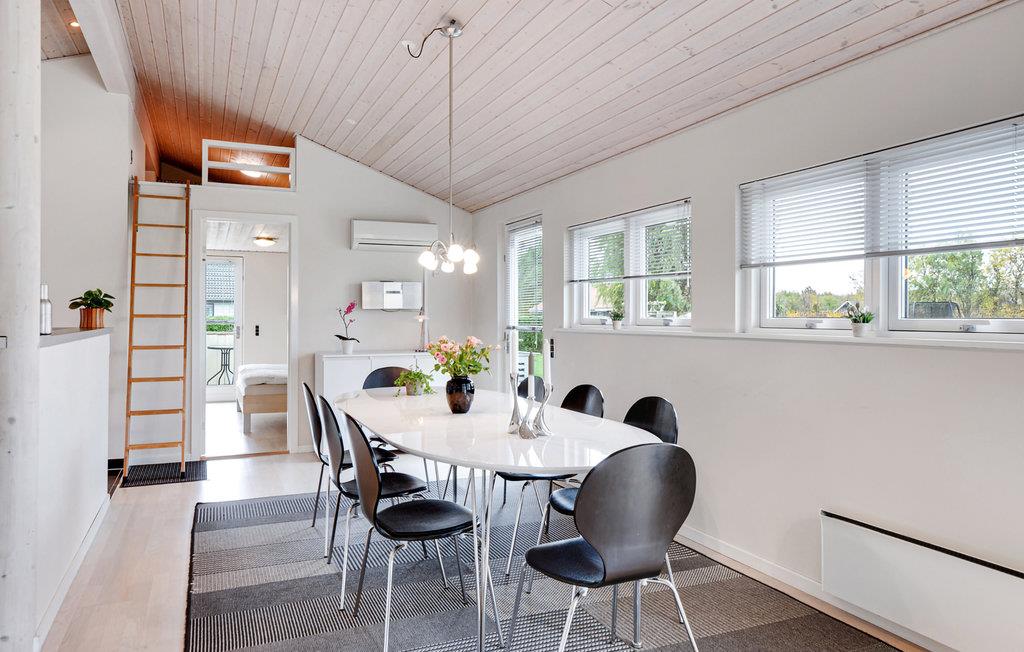 Det indbydende feriehus venter sine gæster i Skovsmose Strand og tilbyder 3 soveværelser med komfortable dobbeltsenge og 2 badeværelser til op til 8 personer. Gennem gulv til loft-vinduerne i stuen har I en vidunderlig udsigt over det grønne. Gør jer komfortable omkring brændeovnen på kølige aftener og nyd den hyggelige atmosfære.