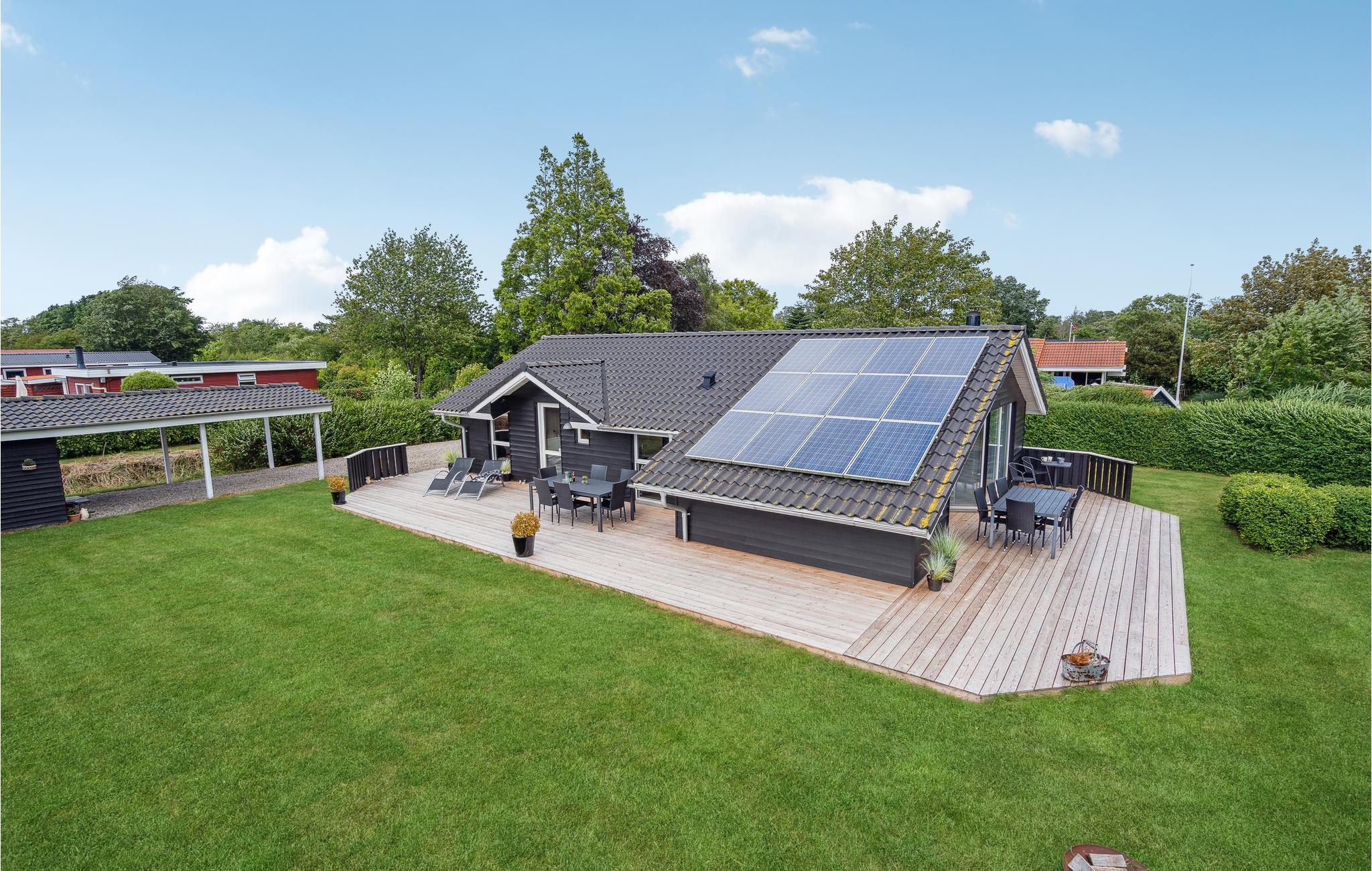 De store vinduer går gulv til loft og sørger for et dejligt lys og et skønt udsyn til haven. I får også glæde af husets gode faciliteter, som omfatter gulvvarme, spabad på badeværelset og sauna. Udenfor er der en stor terrasse med havemøbler, herunder liggestole til solbadning og en grill, så I kan tilberede lækre retter under åben himmel på de lune sommerdage.