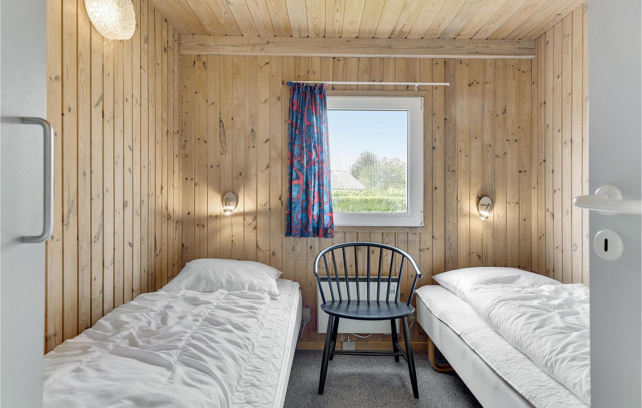 Glæd jer til en afslappende ferie med familien. Feriehuset fremstår yderst hyggeligt med trævægge, og brændeovnen i den lyse stue tilfører en hjemlig atmosfære. Med fire soveværelser og to badeværelser er huset dejligt rummeligt. Efter en lang dag med eventyr kan I slappe af i boblebadet og saunaen.
