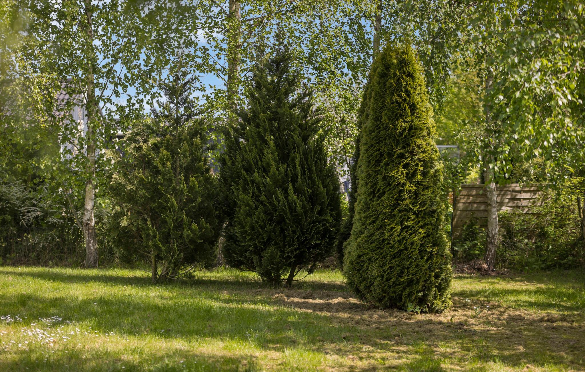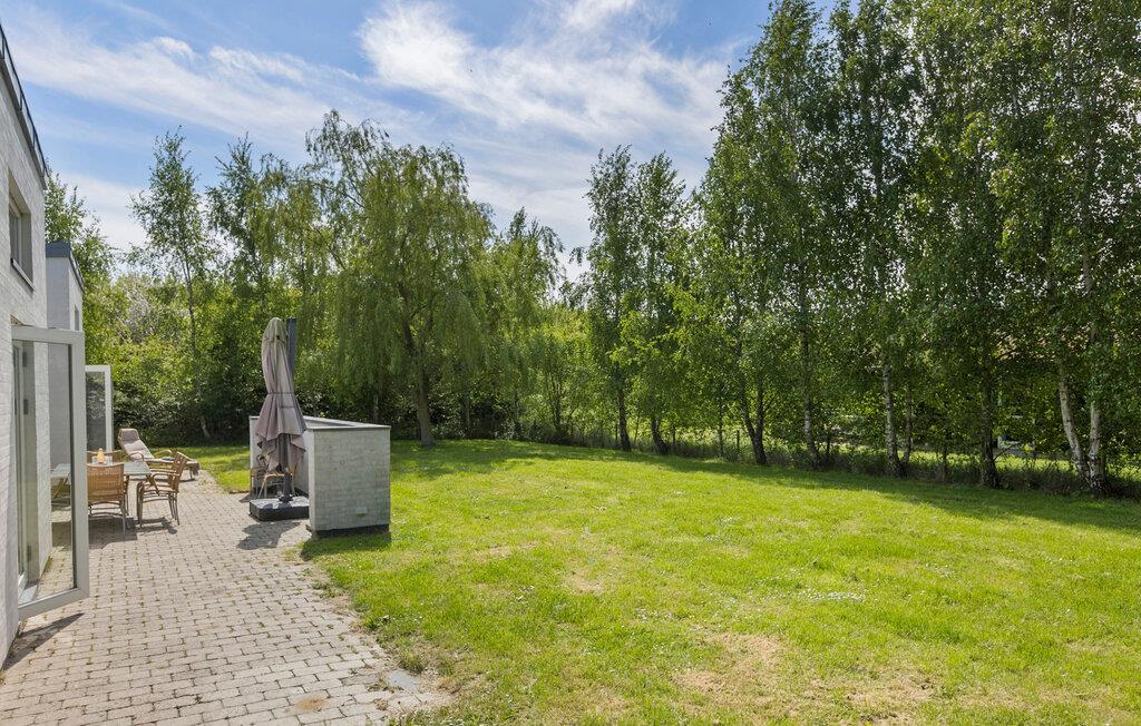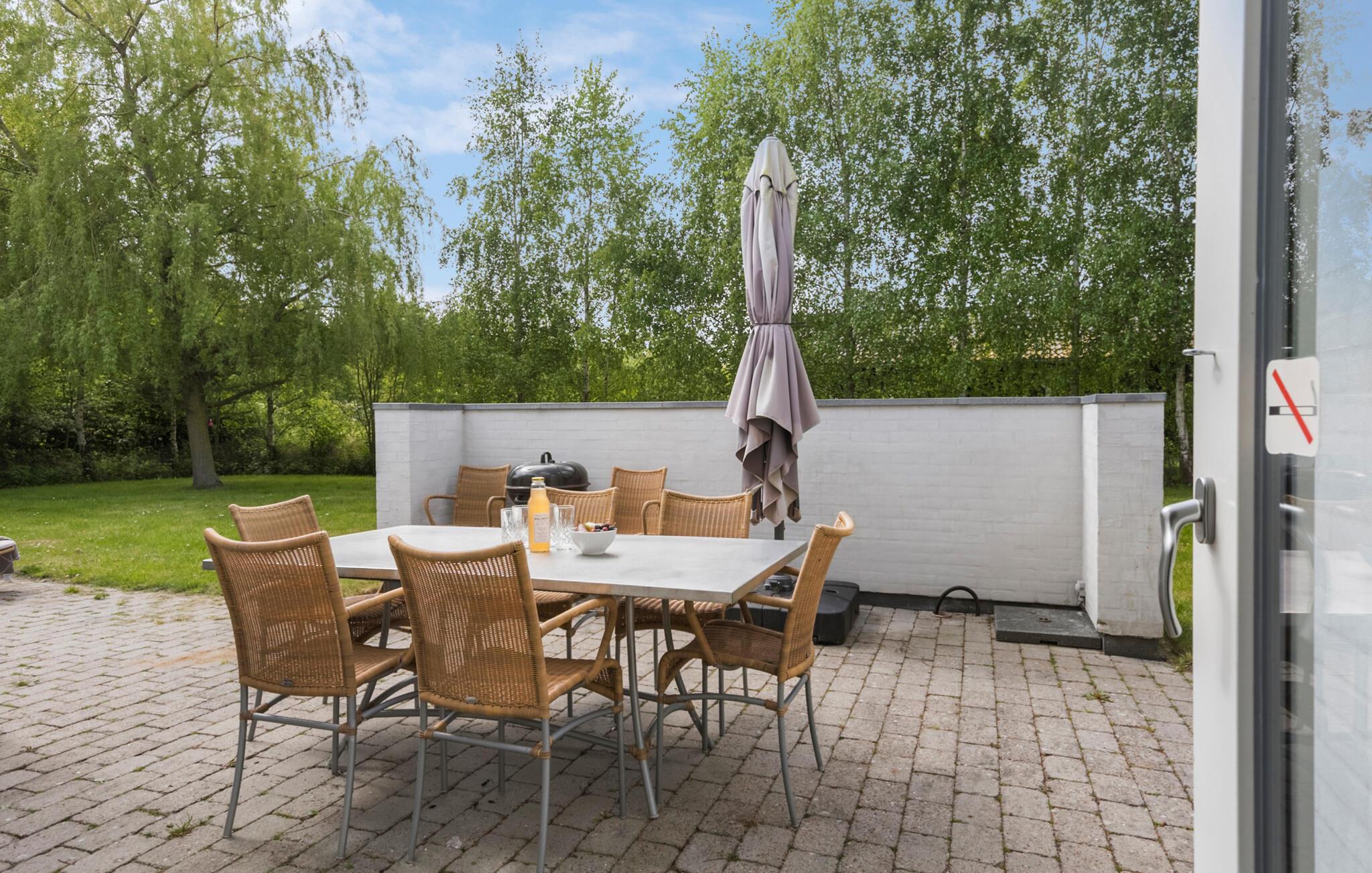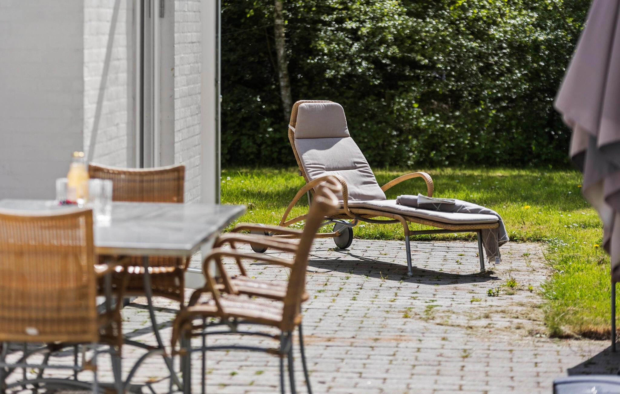 Udenfor inviterer den store terrasse til at spise under åben himmel, og I kan nyde solen på liggestolene. Den velholdte have giver plads til aktiviteter og legemuligheder for børn.