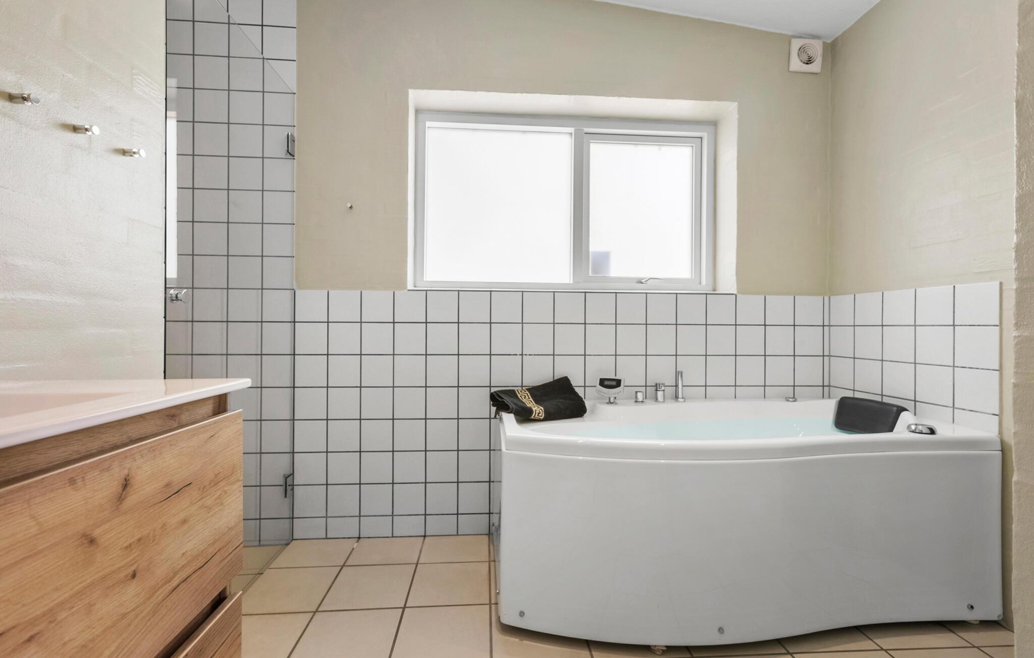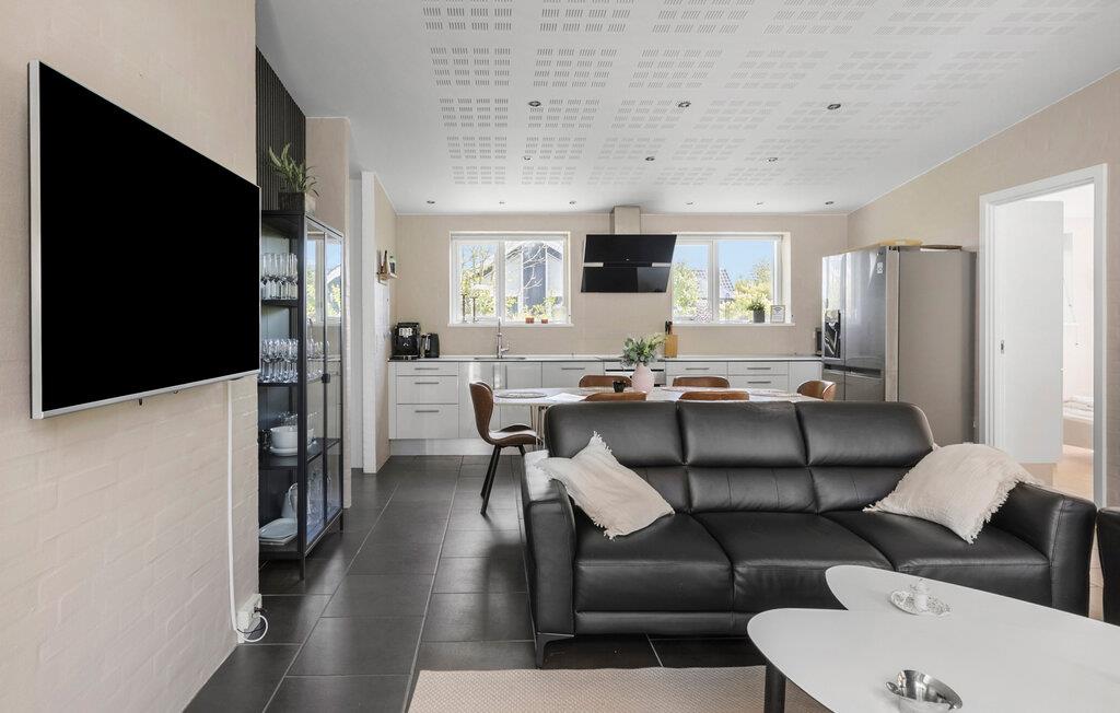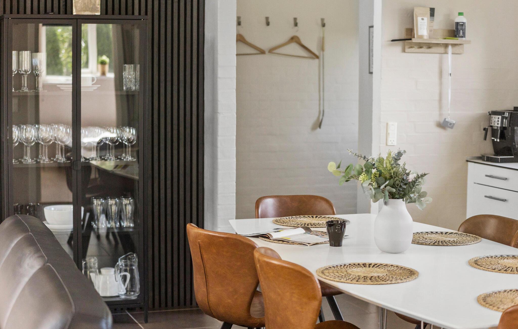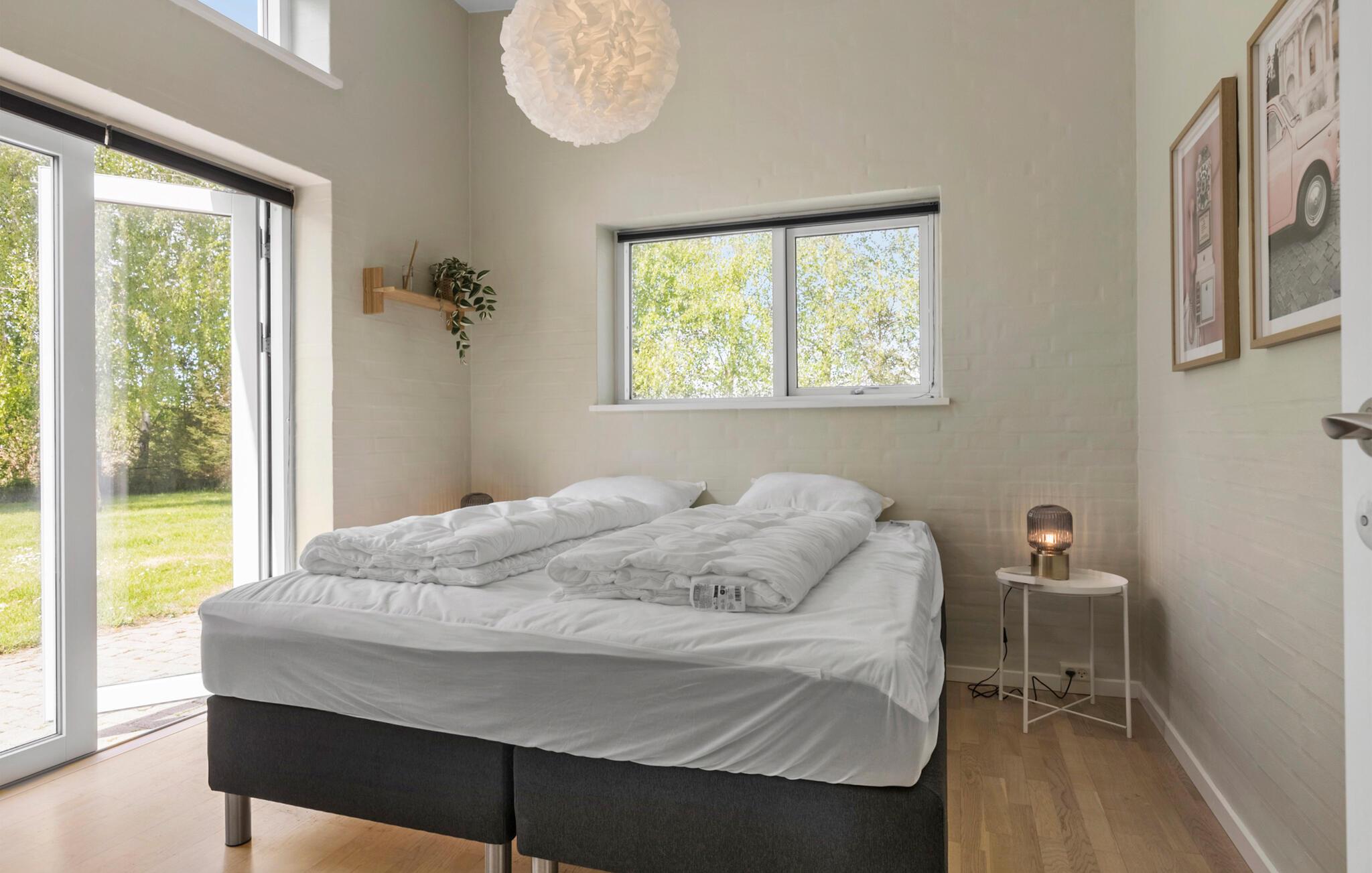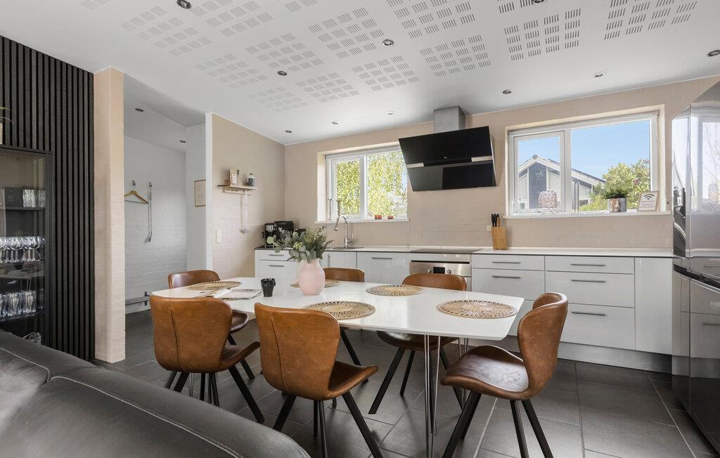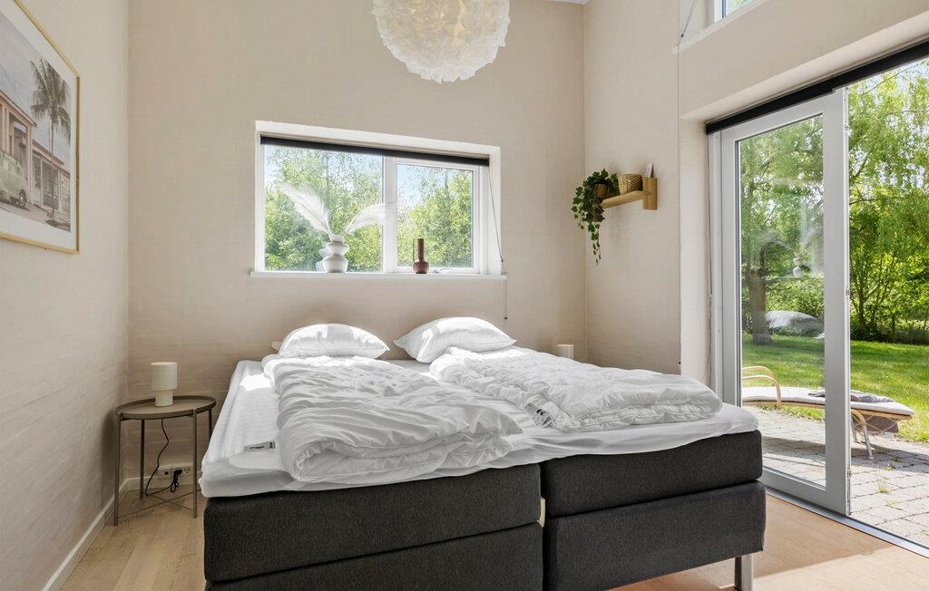 Hold en afslappende ferie i dette stilfulde feriehus, som med sin lyse atmosfære og indretning intet lader tilbage at ønske. Nyd fred og komfort i de smukke omgivelser ved Skovmose Strand. Inde i huset bliver I mødt af et moderne og indbydende design. De rummelige vinduespartier giver masser af lys ind i opholdsrummet, som lægger op til at blive hængende med komfortable møbler og en muret pejs. Det åbne køkken byder på plads nok til at tilberede lækre måltider sammen og spise i godt selskab. Den in-house sauna og spabad er særligt afslappende og giver jer beroligende afslapning efter en dag fuld af fornøjelige oplevelser.