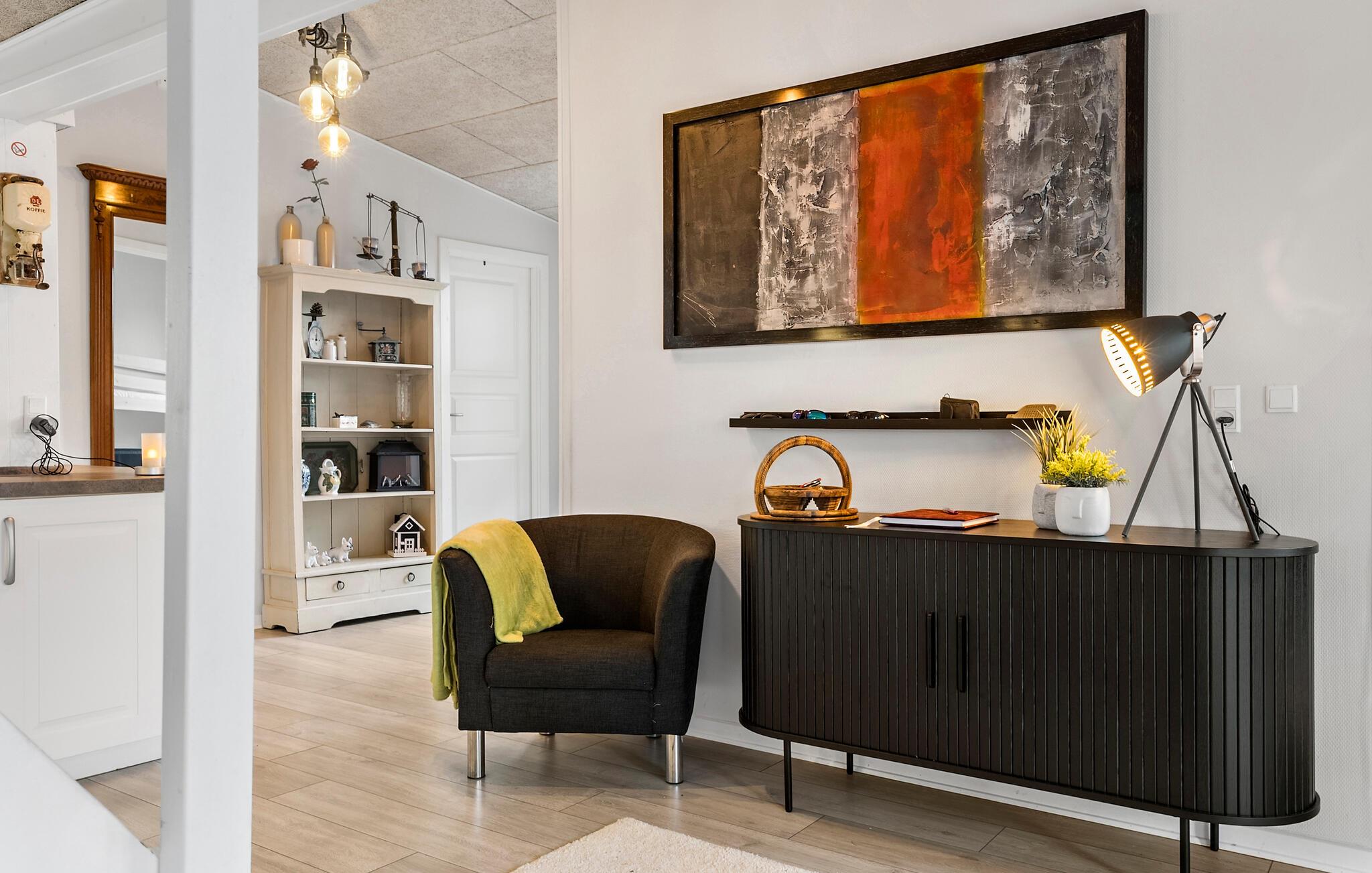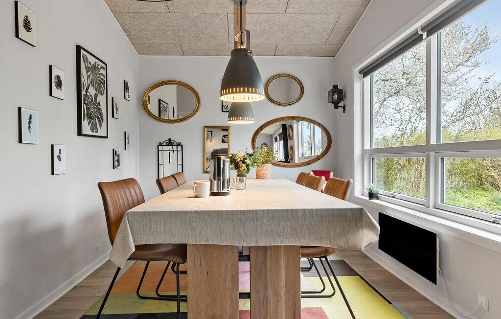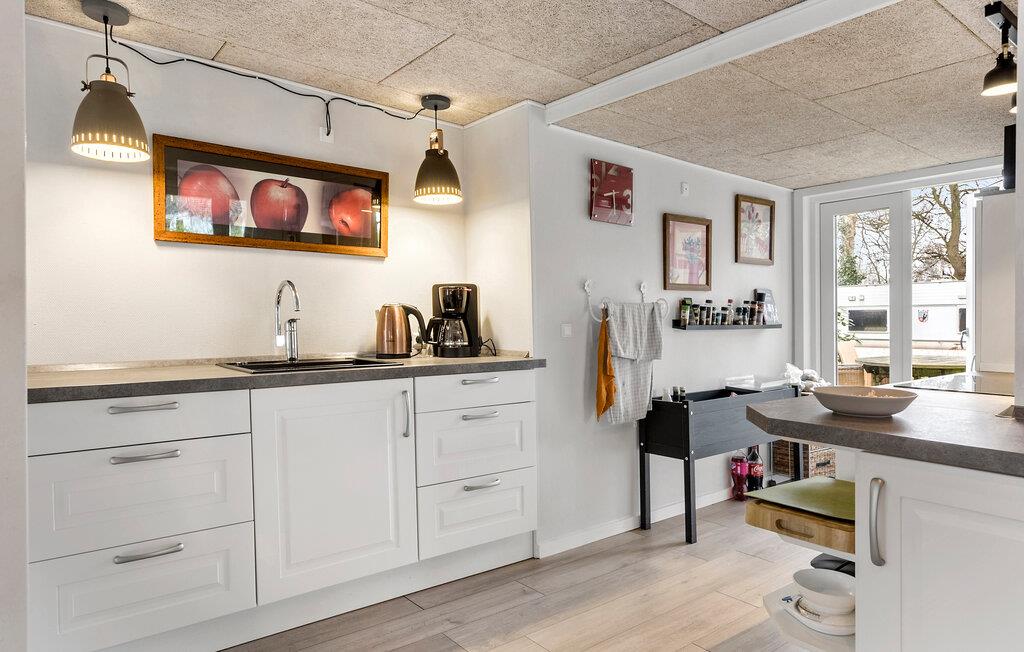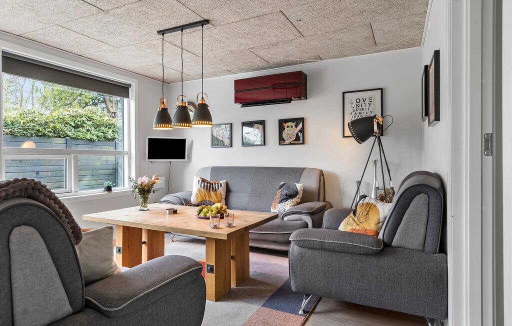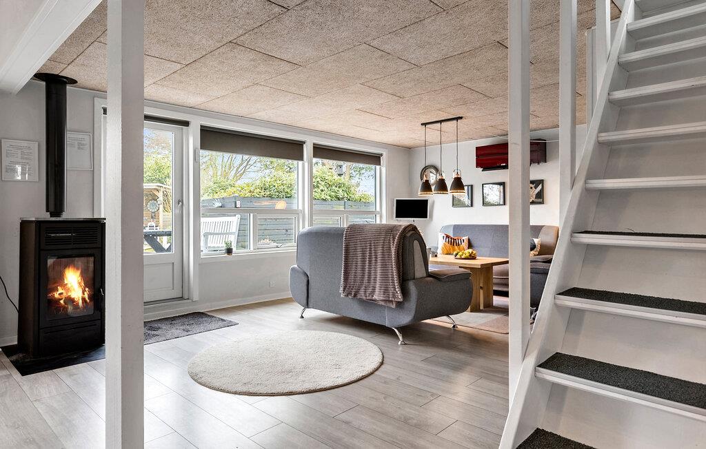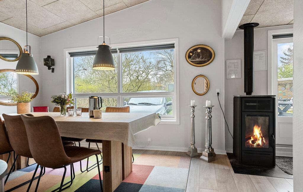 Beliggende i et velholdt boligområde med hyggelige haver byder dette charmerende feriehus jer velkommen. Indenfor finder I en smagfuldt indrettet stue med store vinduer, der giver en skøn udsigt til haven. Tilbered jeres yndlingsretter i det fuldt udstyrede køkken, og nyd dem i den lyse spisestue. Slap af med en god bog på de komfortable sofaer, eller stream en spændende film, mens lyden af den knitrende brændeovn skaber en hyggelig atmosfære.