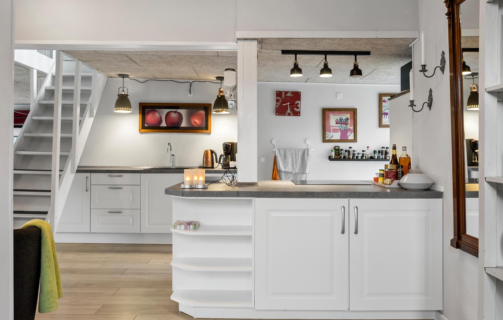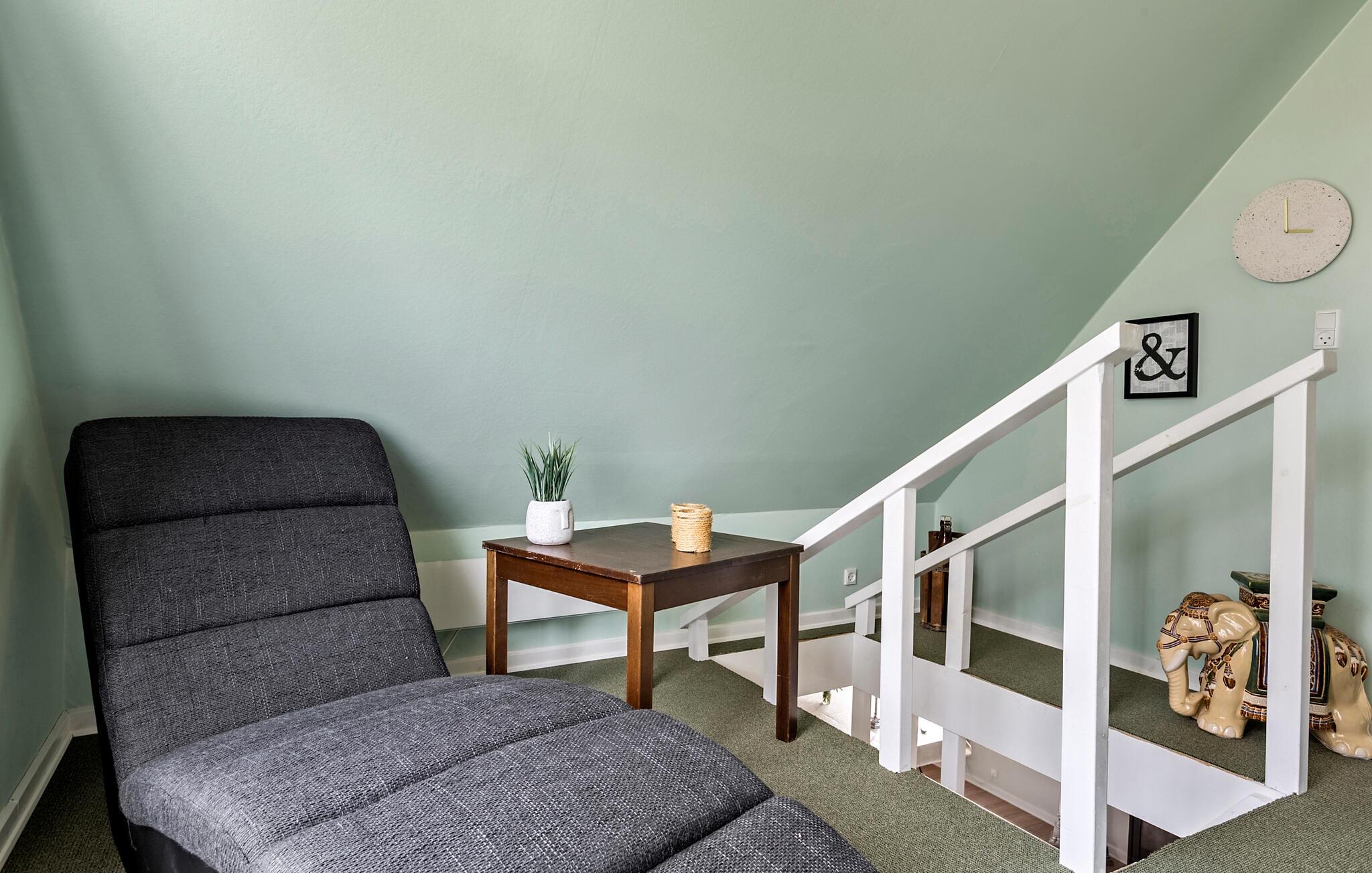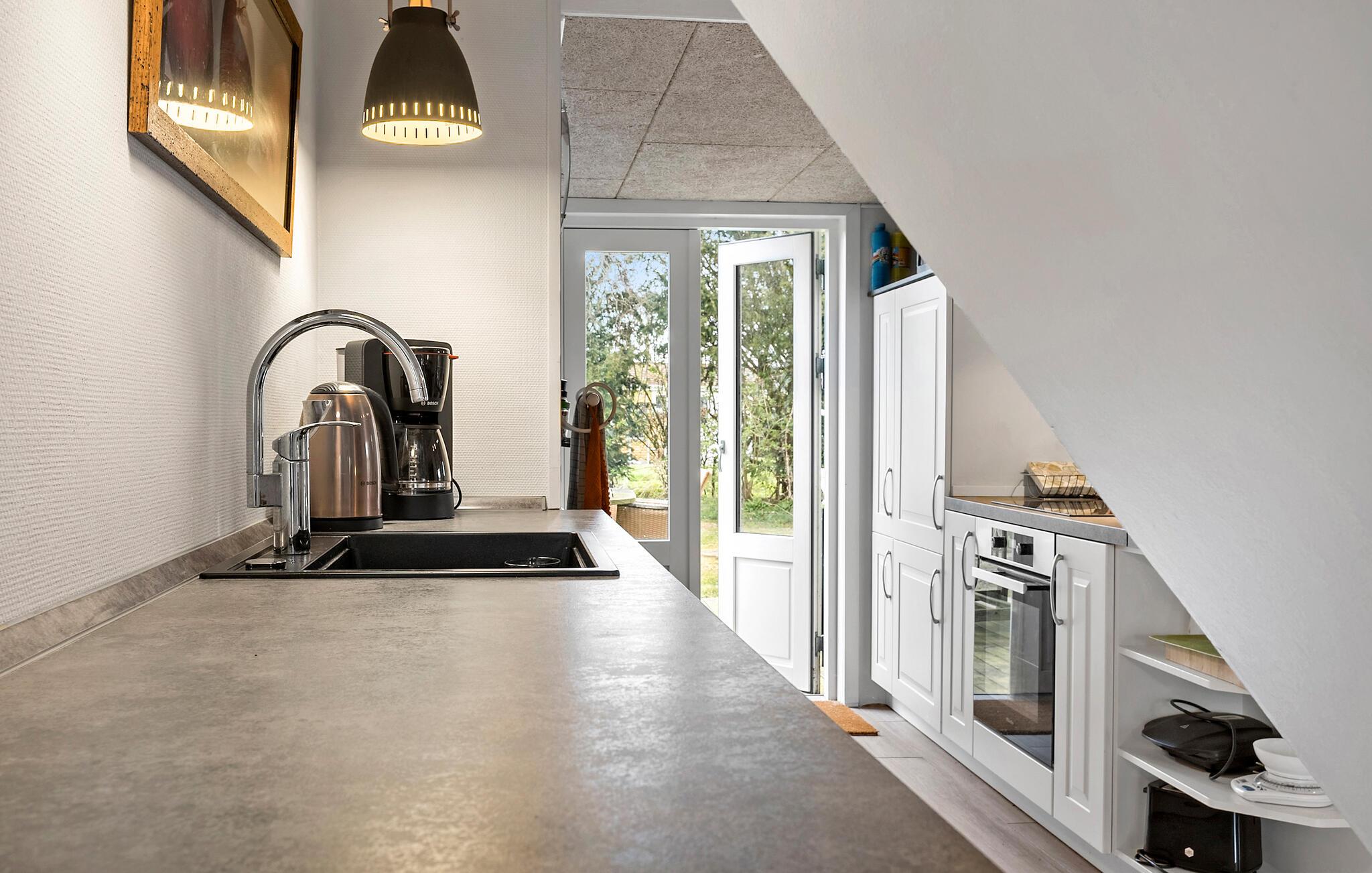 Beliggende i et velholdt boligområde med hyggelige haver byder dette charmerende feriehus jer velkommen. Indenfor finder I en smagfuldt indrettet stue med store vinduer, der giver en skøn udsigt til haven. Tilbered jeres yndlingsretter i det fuldt udstyrede køkken, og nyd dem i den lyse spisestue. Slap af med en god bog på de komfortable sofaer, eller stream en spændende film, mens lyden af den knitrende brændeovn skaber en hyggelig atmosfære.