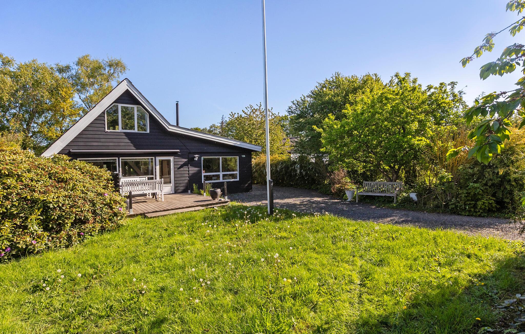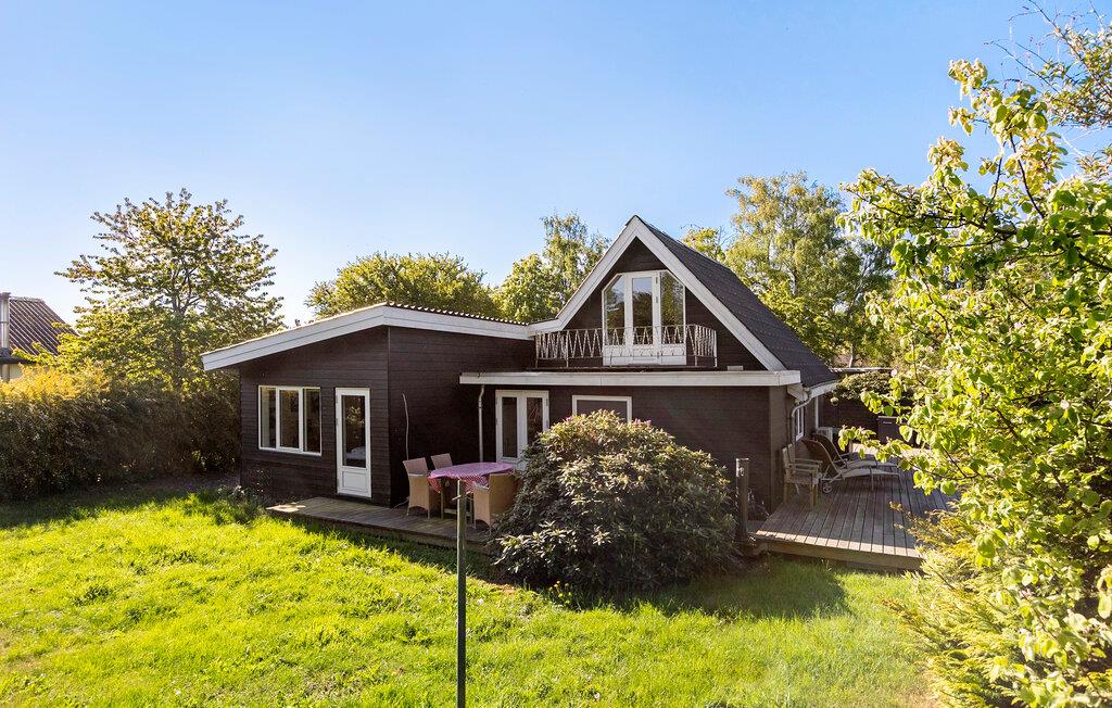 Hyggeligt feriehus nær Skovmose Strand med have, terrasse og brændeovn for afslappende feriedage.
