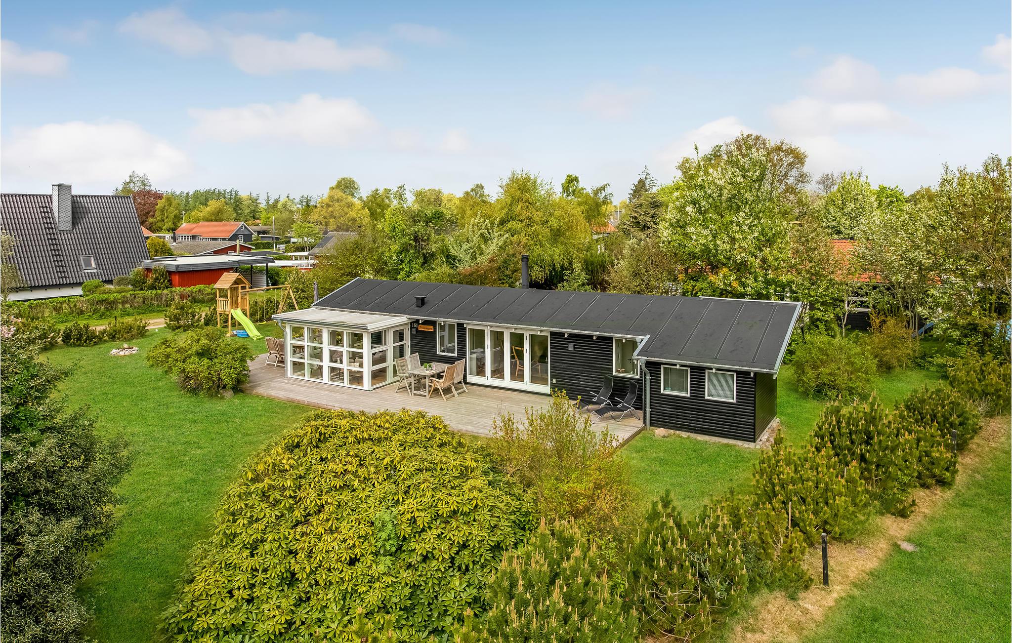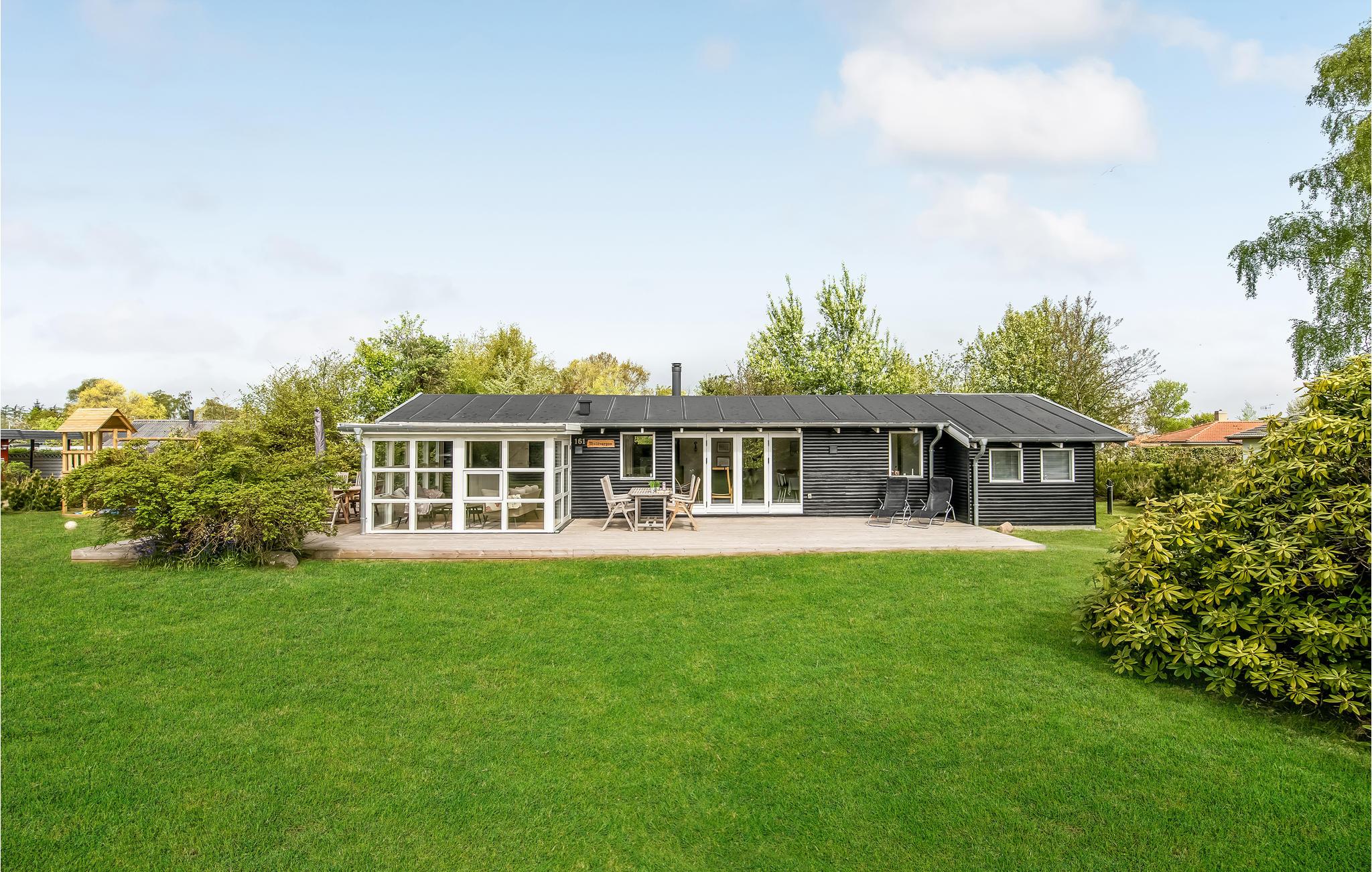 Hyggeligt feriehus i 2. række ved Skovmose Strand med moderne køkken og dejlig havestue, kun 100 meter fra vandet.