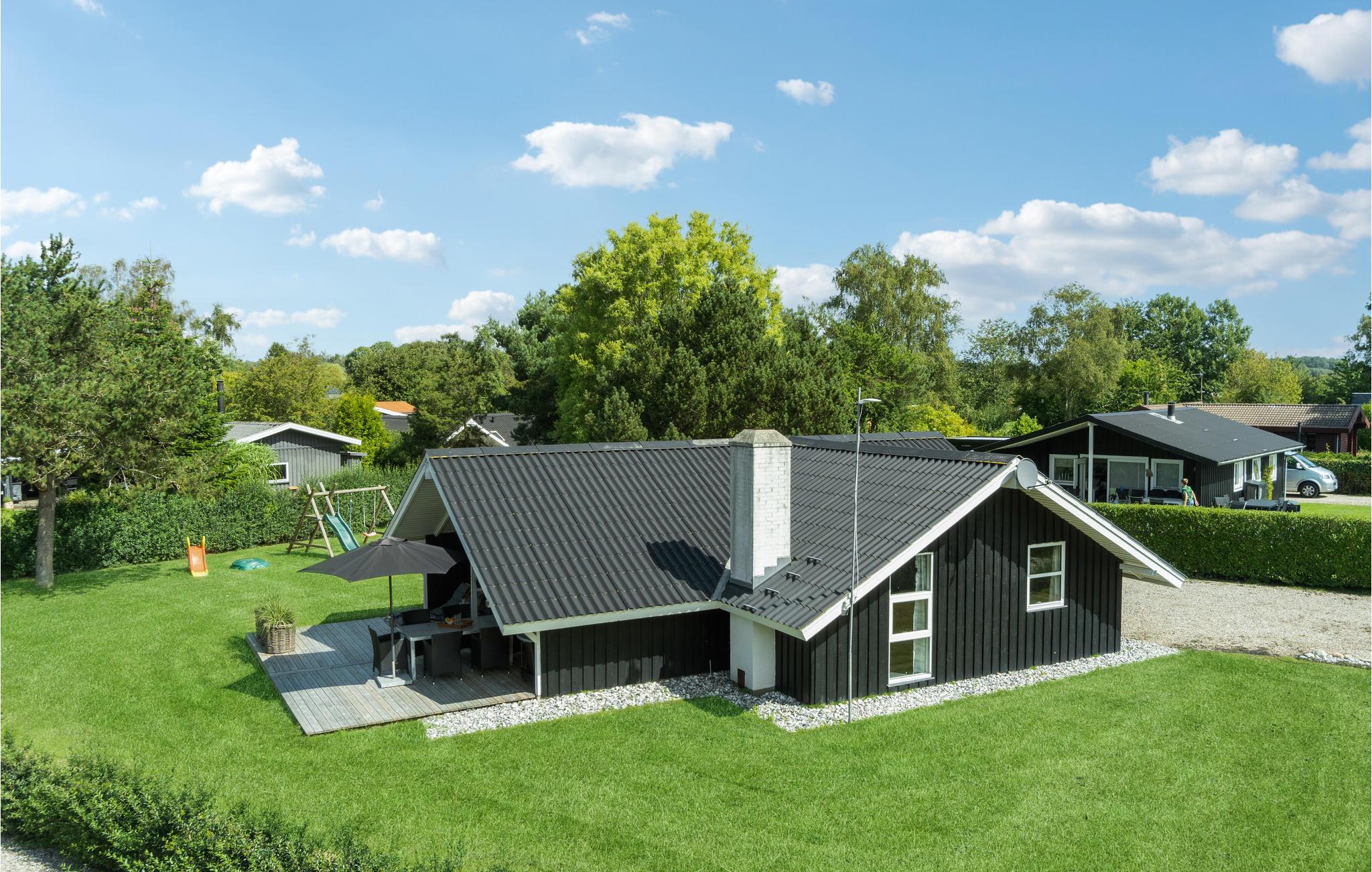 Hyggeligt energivenligt fritidshus tæt på børnevenlig strand og skov på Als med moderne faciliteter og stor have.