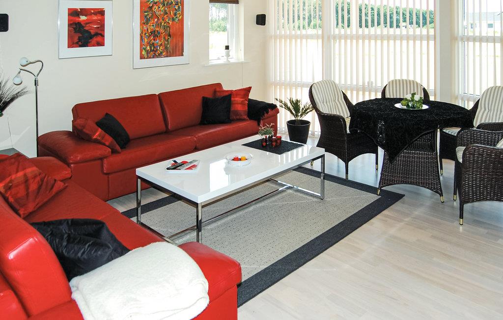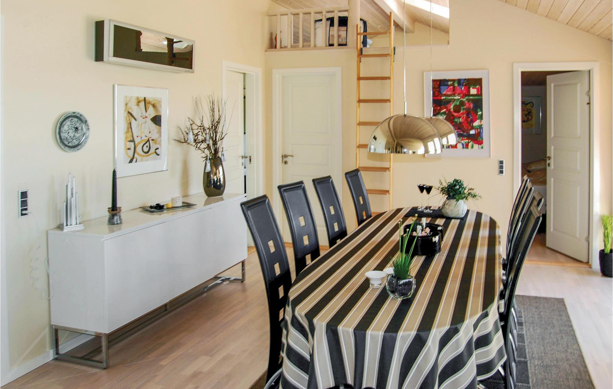 I dette feriehus med høj komfort beliggende i populære Skovmose venter ren råhygge! Her kan I endelig koble af og tilbringe ægte kvalitetstid med dem, I holder af. Husets byggestil med høje lofter tillader en hyggelig hems, som jeres børn helt sikkert vil synes om. Atmosfæren er moderne og lys, takket være de fantastiske vinduer. Vægfarven giver også et varmt strejf. Lav puslespil med børnene ved spisebordet eller deltag i børnenes sjove sovehule-byggeri på hemsen. Her er der hjemligt og rart at være, ikke kun indenfor, men også udenfor på den store terrasse og i den store anlagte have. Et godt sted til fodbold! Terrassen indbyder til snacks, kølige drinks, solbadning og grillaftener. I nærheden kan I forfriske jer i skønne Kattegat sammen med børnene.