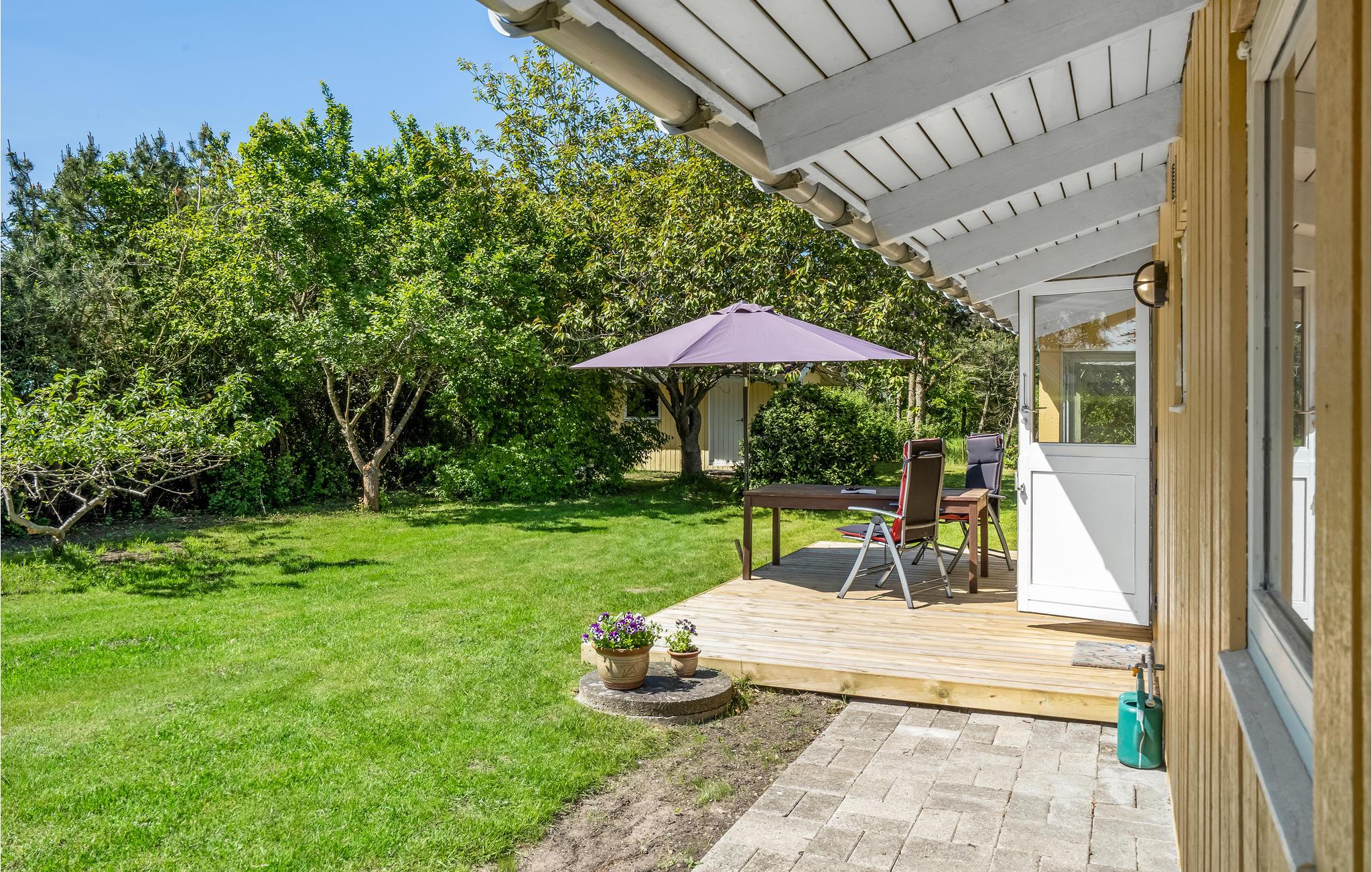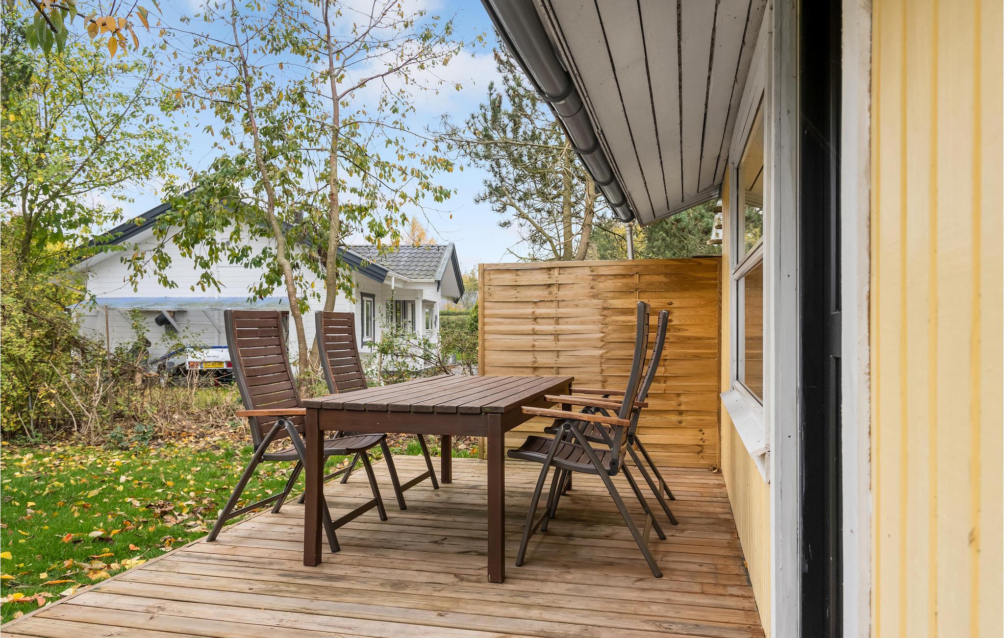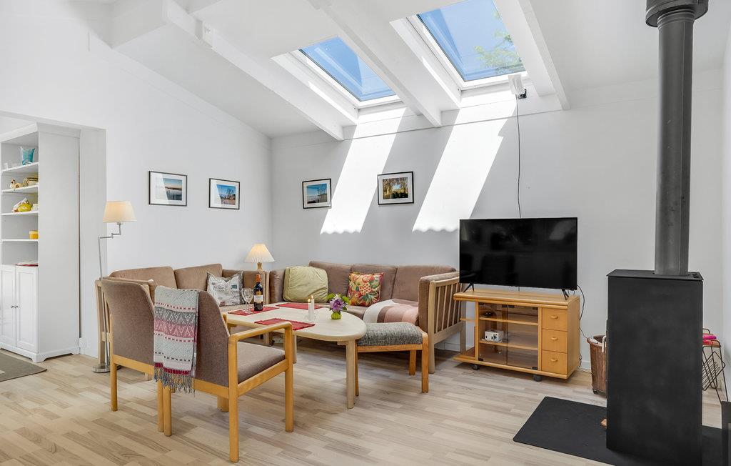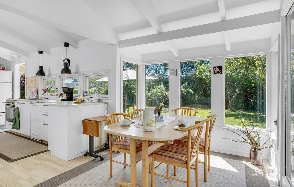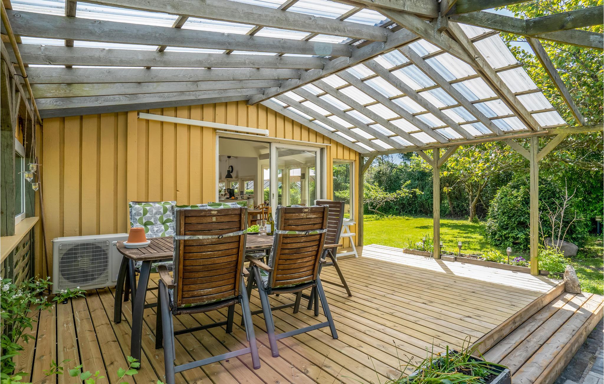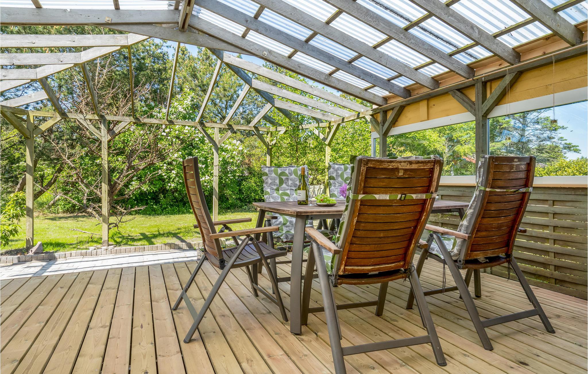 Velkommen indenfor i dette indbydende sommerhus, hvor ovenlysvinduerne og de dæmpede farvertoner sørger for et smukt naturligt lys. Sæt jer sammen og nyd feriens måltider eller spil brætspil ved spisebordet, hovrfra I kan nyde en smuk udsigt over det omkringliggende grønne område gennem de store vinduer. Gør jer komfortable sammen i det hyggelige opholdsområde og fyr op i brændeovnen om aftenen, hvor en knitrende ild skaber en hyggelig atmosfære. Nyd morgenkaffen på terrassen, mens I planlægger dagens aktiviteter. Senere kan I forlænge de lune sommeraftener ved at sætte jer under den overdækkede terrasse og nyde en lækker grillmiddag. Annekset tilbyder ekstra plads og privatliv og her finder endnu en dejlig terrasse.