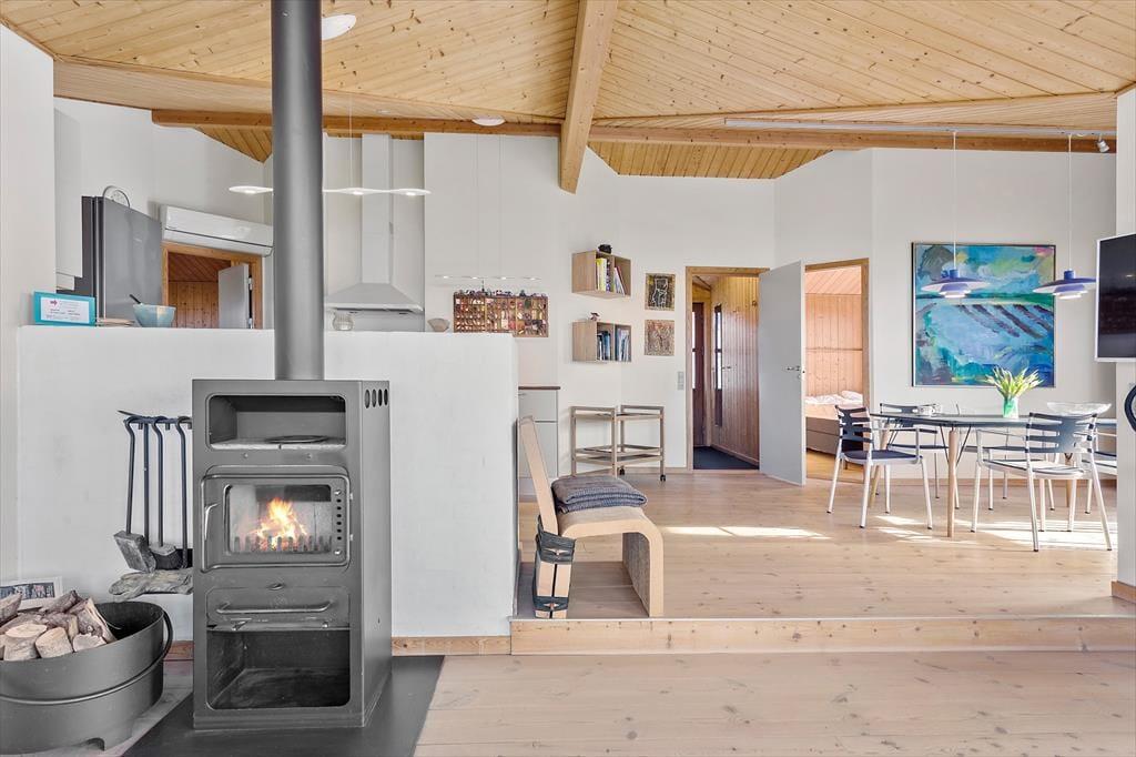 Som du træder ind i dette charmerende sommerhus, bliver du mødt af en lys og indbydende atmosfære. De store vinduer i stuen giver et dejligt lysindfald og gør, at du kan nyde udsigten over fjorden, selv når du sidder indendørs. Her kan du slappe af med en god bog foran brændeovnen, mens lyden af knitrende flammer skaber hygge. Huset er rummeligt og komfortabelt, og du vil hurtigt føle dig hjemme i de hyggelige omgivelser. Køkkenet er praktisk og åbent, så du nemt kan tilberede måltider, mens du stadig kan deltage i samtalerne i stuen. Med tre soveværelser og et moderne badeværelse er dette sommerhus ideelt til både små og store familier, som søger et fredeligt tilflugtssted.