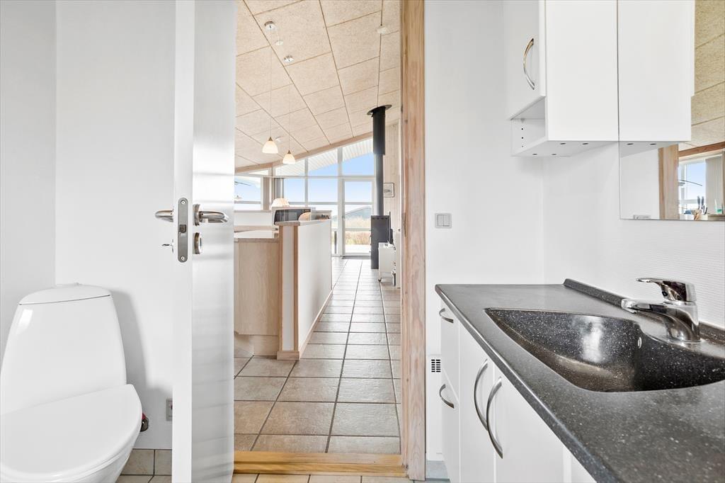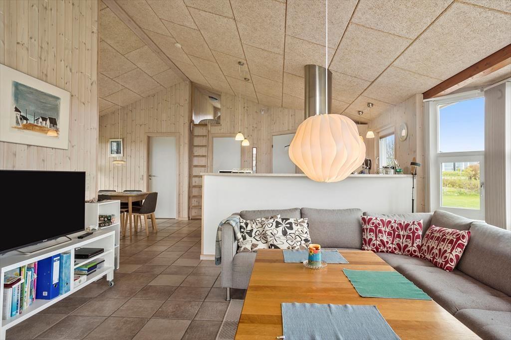 Indenfor bliver du mødt af en indbydende atmosfære, hvor naturlige materialer og lysindfald fra de store vinduer skaber en varm og afslappende stemning. I stuen er brændeovnen hjertet af hjemmet, hvor du kan nyde varme og hygge på de køligere dage. Forestil dig at sidde med en god bog, mens flammerne knitrer, og den hyggelige atmosfære fylder rummet. De åbne opholdsrum gør, at familier og venner kan samles omkring fælles aktiviteter eller blot nyde hinandens selskab. Uanset om du er til at lave mad i køkkenet eller slappe af i sofaen, er dette stedet, hvor ferieoplevelserne virkelig tager form.