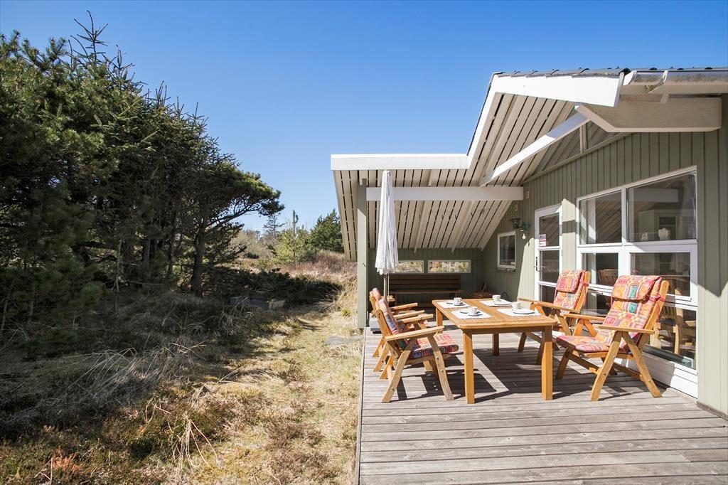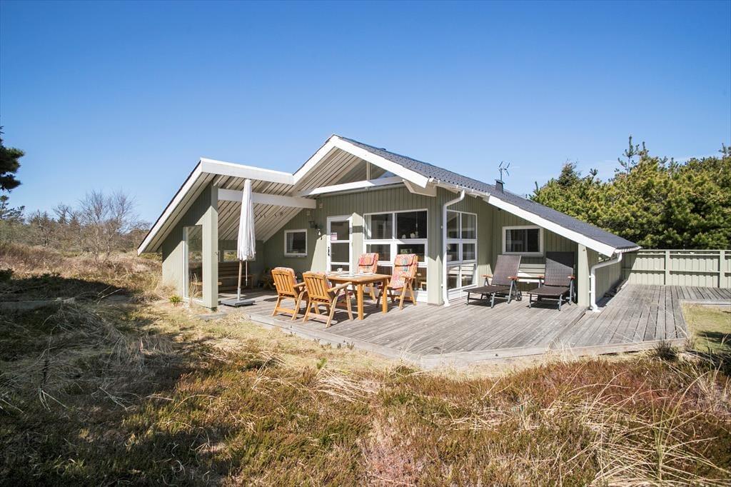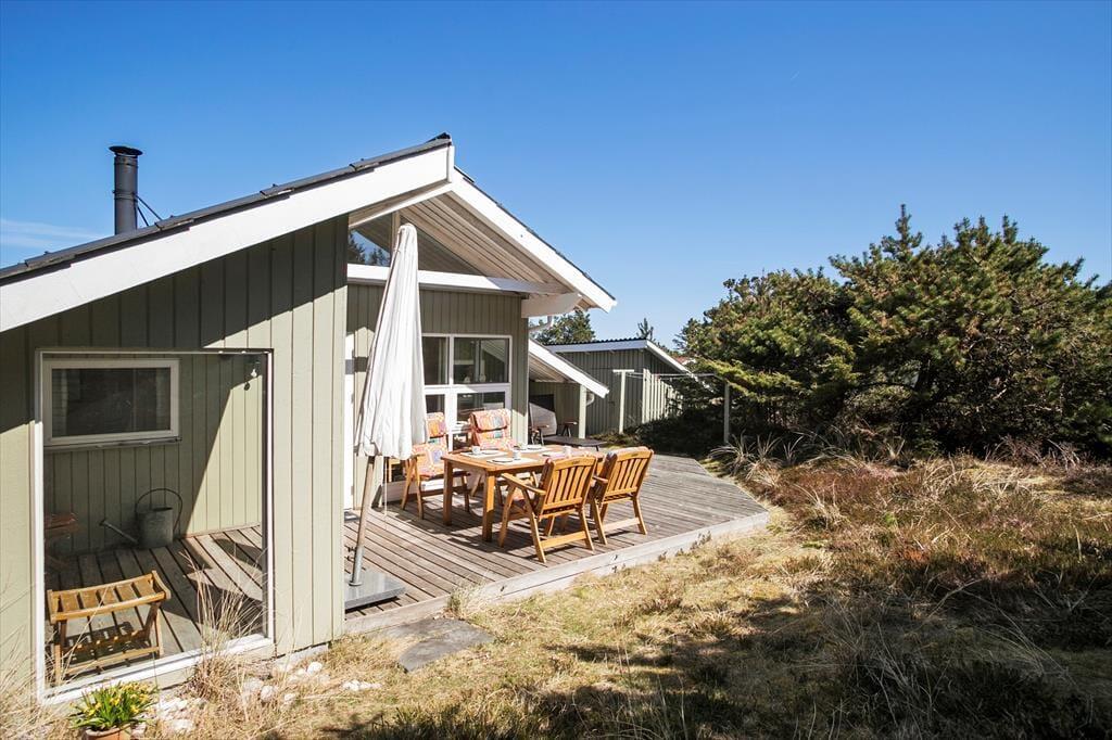 Solbeskinnet afslapning på terrassen og hyggestunder nær brændeovnen kan oplagt blive del af ferien, når I tilbringer den i dette skønne sommerhus i Slettestrand. En spadseretur langs med kysten og en dukkert i Vesterhavet kan også inkluderes i det daglige ferieprogram, for I bor blot 550 meter fra den smukke strand.