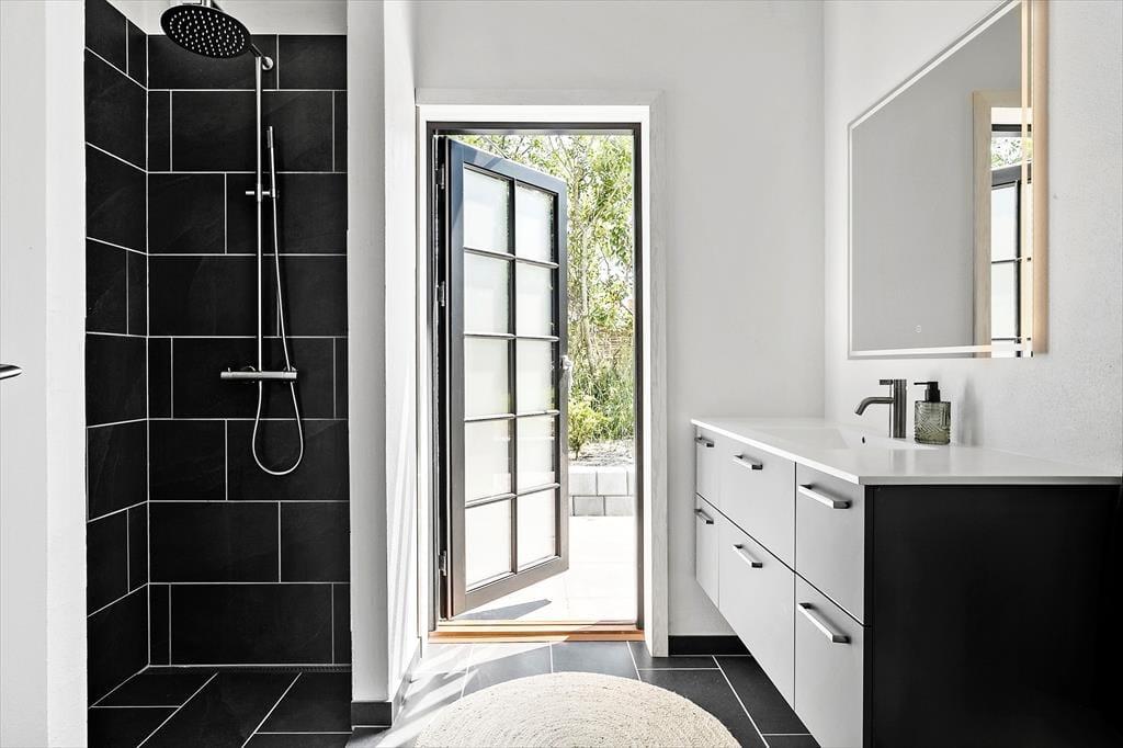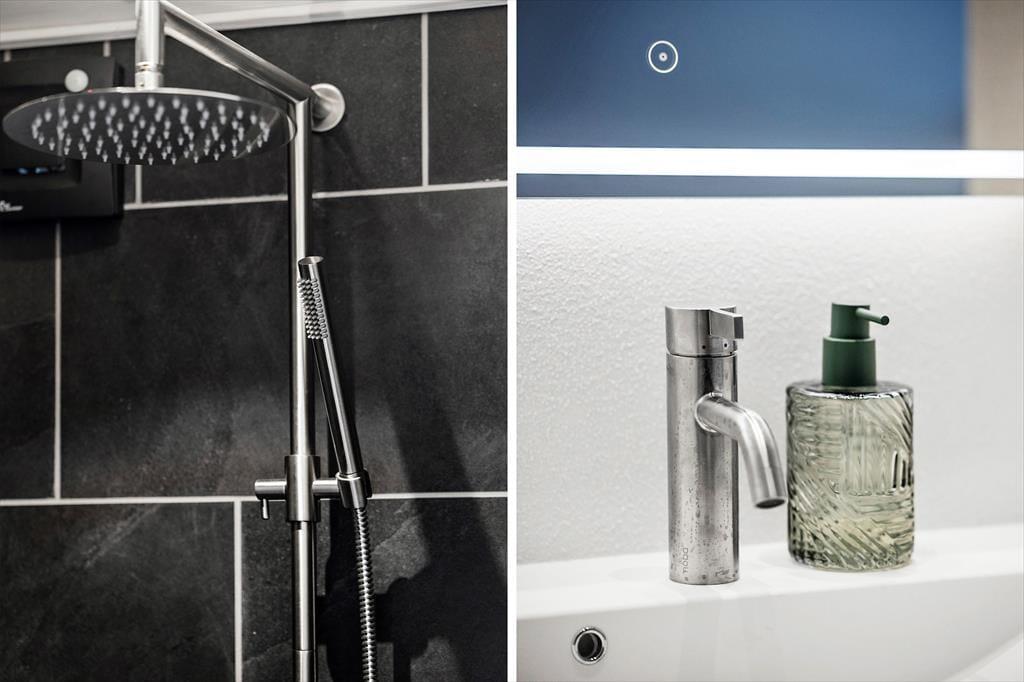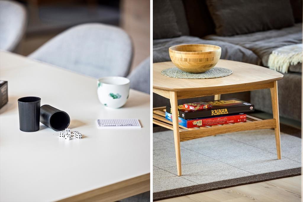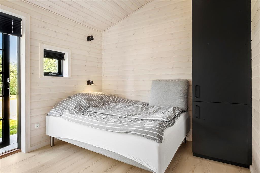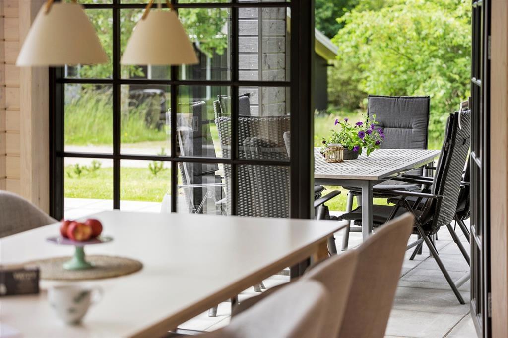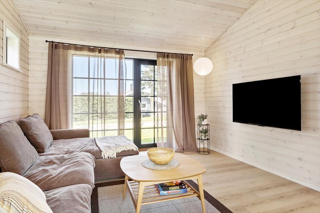 Når du træder ind i sommerhuset, mødes du af et moderne og stilfuldt interiør. Stuen er lys og rummelig med flotte "New Yorker"-vinduer og døre, der lukker masser af lys ind og giver en skøn udsigt til den omkringliggende natur. De komfortable møbler og den hyggelige atmosfære skaber det perfekte sted til afslapning efter en dag fyldt med aktiviteter. Det åbne køkken er udstyret med alt, hvad du behøver for at tilberede lækre måltider, herunder en emhætte integreret i induktionskogepladen. Det store spisebord indbyder til hyggelige middage med familien. Sommerhuset rummer tre soveværelser med behagelige senge, og de moderne badeværelser har alt, hvad du behøver for en behagelig ferie. Derudover er der gulvvarme i hele huset, hvilket sikrer en behagelig temperatur året rundt.