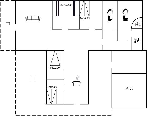 Der er 2 badeværelser med bruseniche og 2 toiletter. Der er gulvvarme på 1 badeværelse. I saunaen er der mulighed for afslapning.