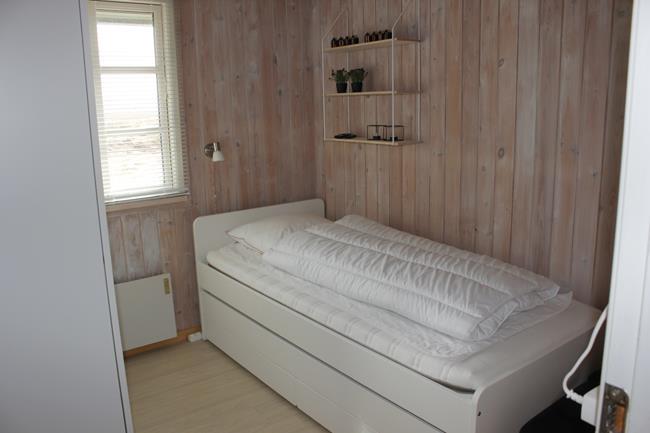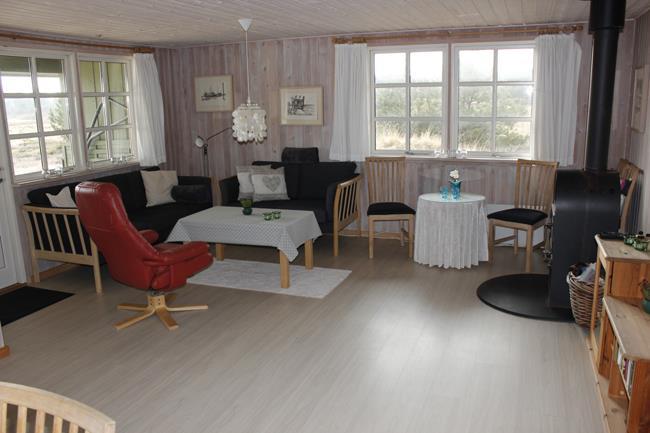 Huset består af 3 værelser, to med dobbelt senge og et med enkel seng. Endvidere er der et stort badeværelse. Resten af huset består af et køkkenalrum med et stort spisebord, hvor der er plads til hele familien. Her finder man også en stor hjørnesofa, hvorfra man kan nyde pejsen eller tv'et. En ekstra detalje ved dette rum, er at der er et orgel. Her kan man med hele familien byde op til fællessang, efter en dejlig dag på stranden, som kun er et stenkast herfra.