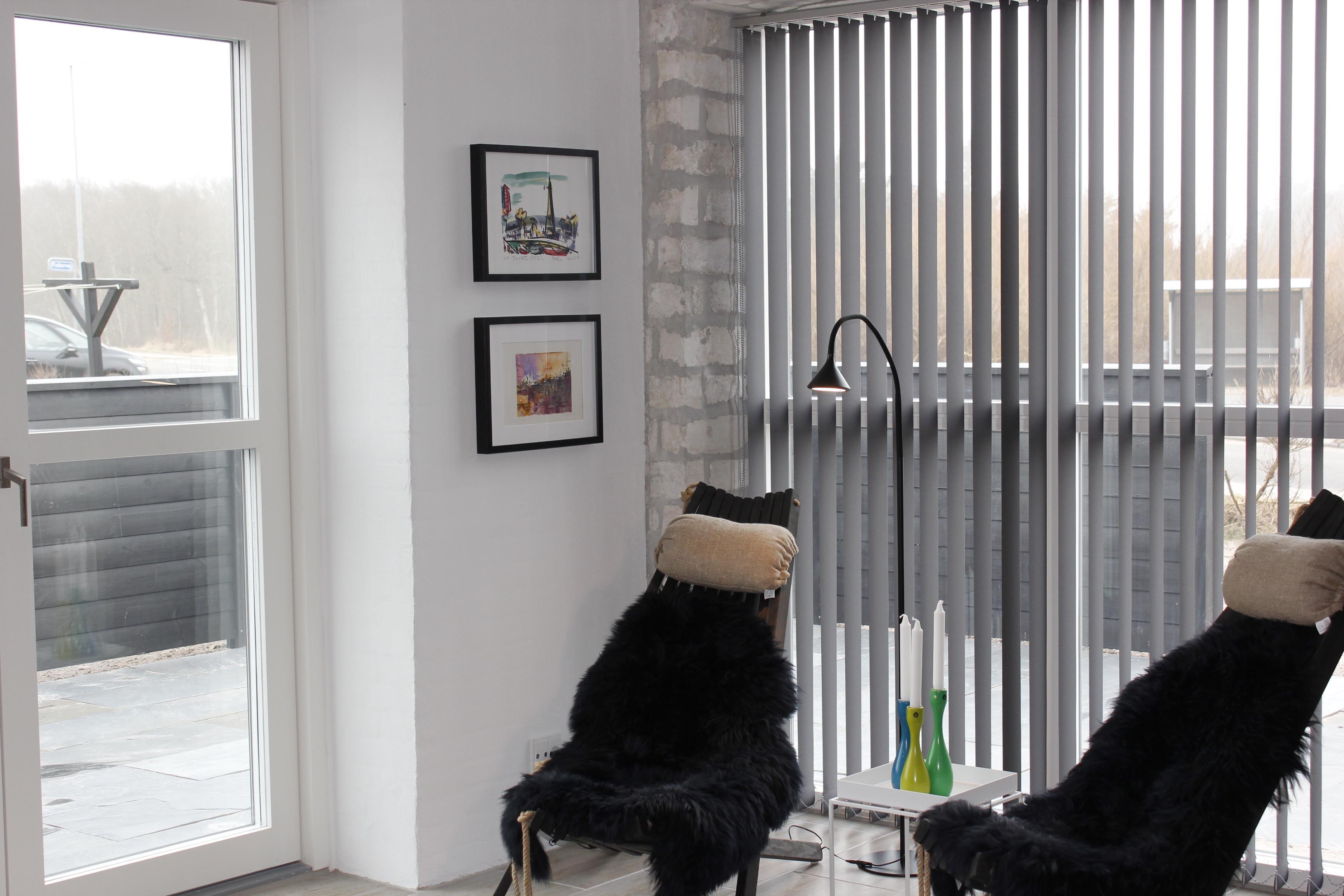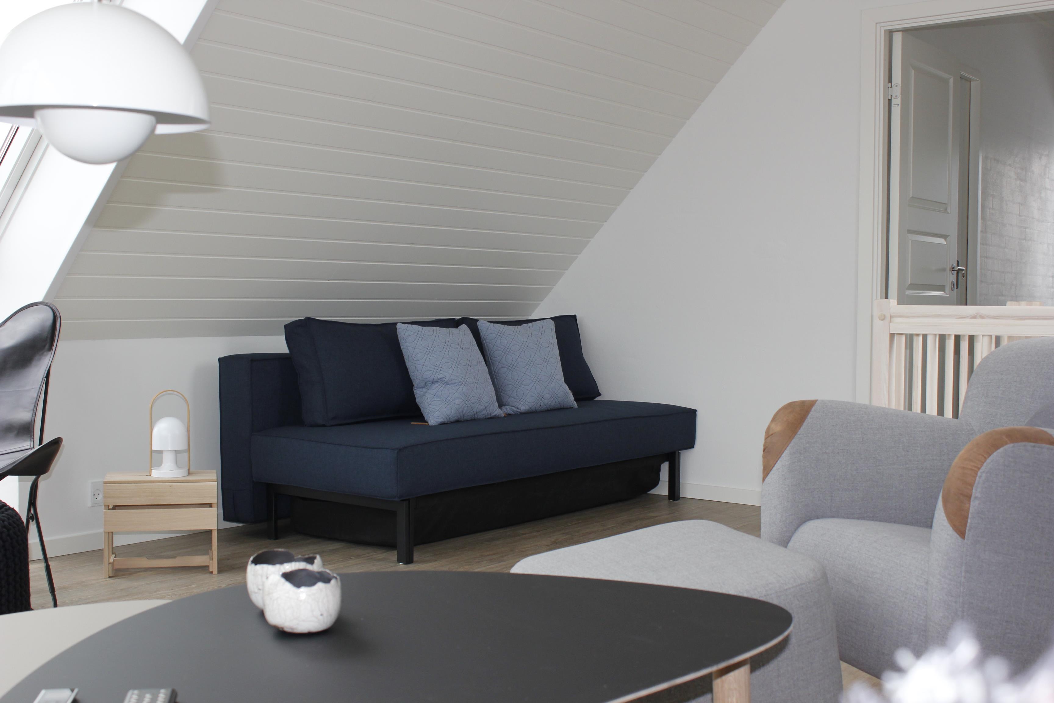 Dette dejlige hus, som er bygget i 2017 -- har, i stueplan, moderne køkken med alle faciliteter. Der er soveværelse med dobbeltseng (180 x 200), - dejligt badeværelse. Overalt i stueplan er der gulvvarme (som leveres centralt) Herudover er der for hyggens skyld en bio-ethanol ovn. På 1.salen er der også et soveværelse med dobbeltseng (160 x 200) og ligeledes her et badeværelse. I stuen på 1. salen er foruden det lækre sofaarrangement en luksus sovesofa (til 2 personer).