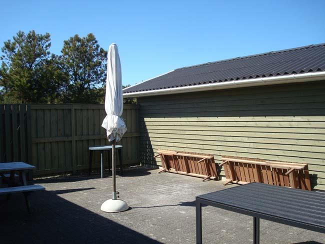 Grunden huset ligger på er god stor, og her er der rig mulighed for at have nogle aktive timer med familien på græsset. Huset ligger i et naturområde, og er man heldig kommer der en flok fasaner gående en tur over grunden. Hvis ikke kan du slappe af til den beroligende lyd af havets brus og fuglenes kvideren. Huset har to terrasser, den ene er mod syd, hvor man kan nyde eftermiddagssolen. Den anden terrasse er tillukket med højt hegn. Begge terrasser har terrassedøre direkte ind i huset.