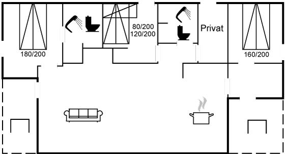 Der er i alt 3 soveværelser. Sovepladserne fordeler sig på: 4 sovepladser i dobbeltsenge. 2 sovepladser i køjeseng.