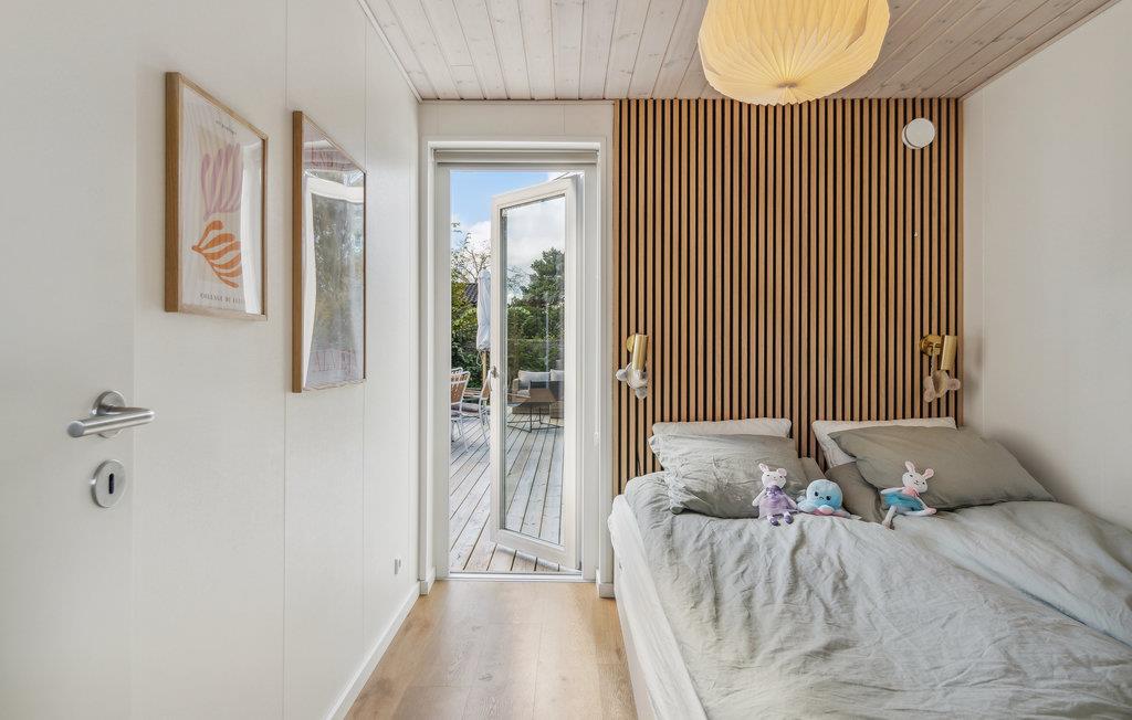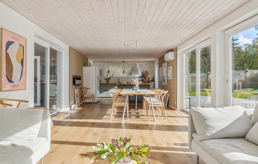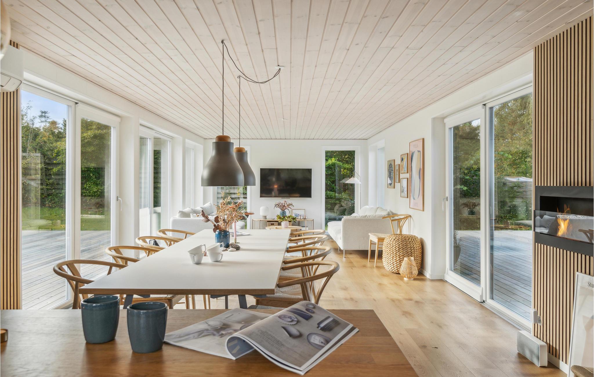 Moderne feriehus med lys atmosfære og stor terrasse i Smidstrup Strand.