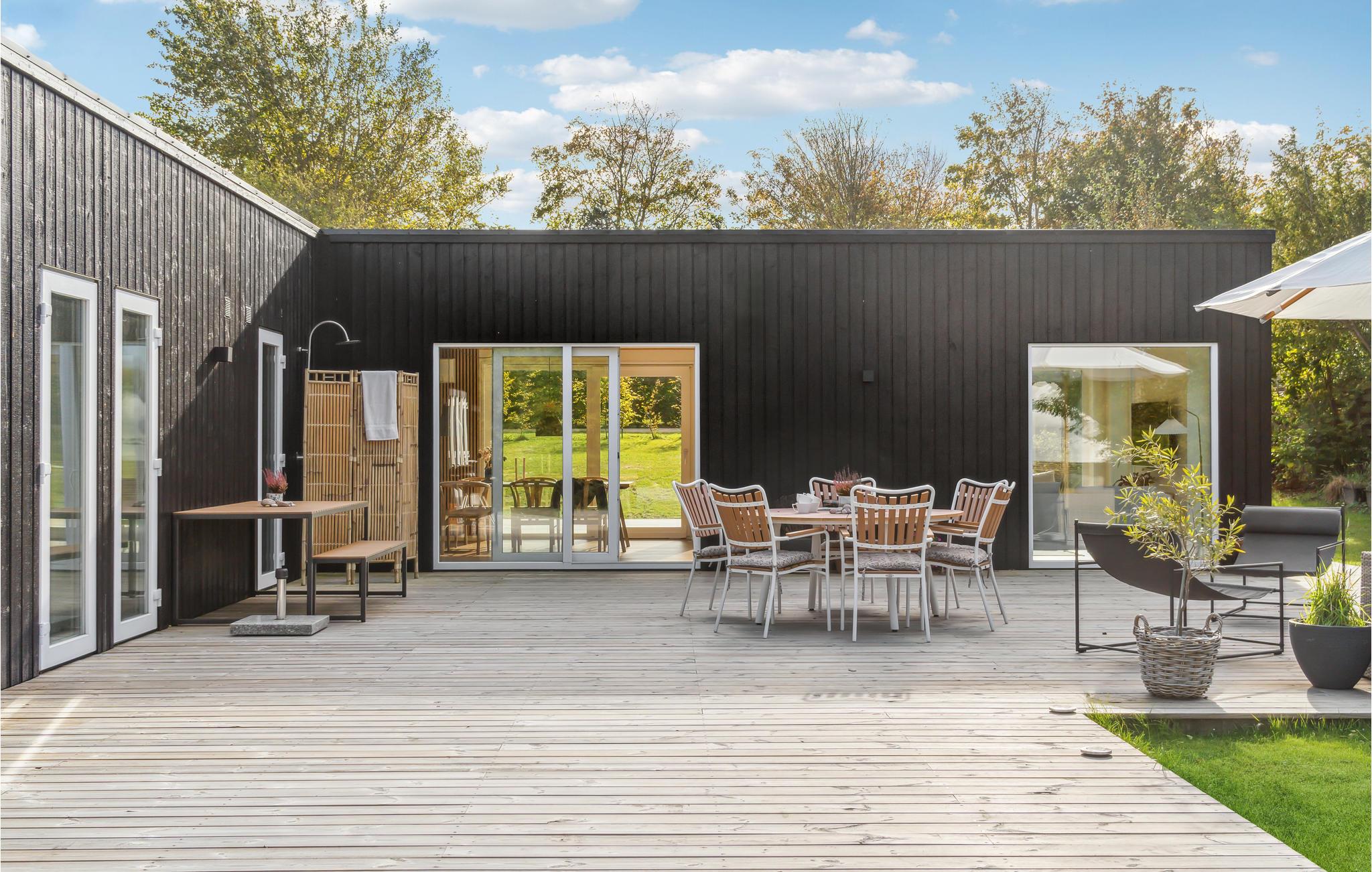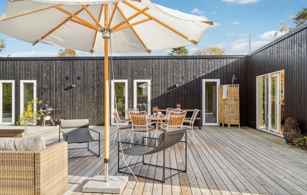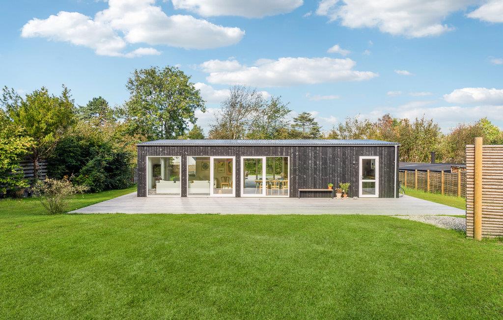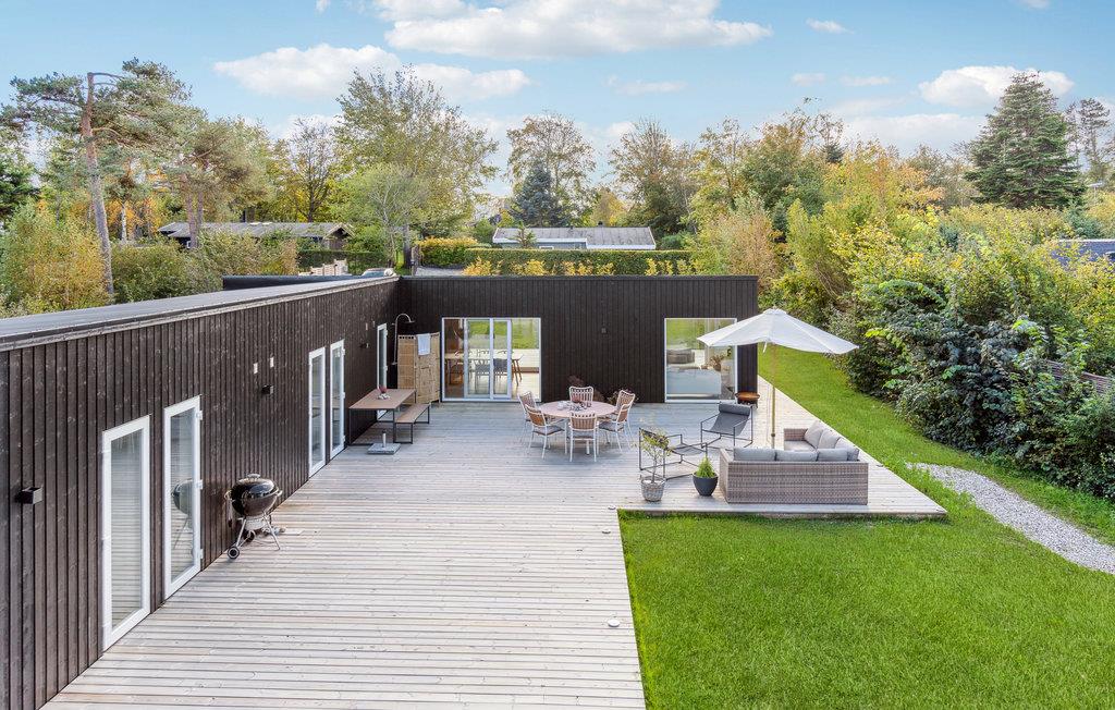 Moderne feriehus med stor terrasse og lys atmosfære tæt på Smidstrup Strand.