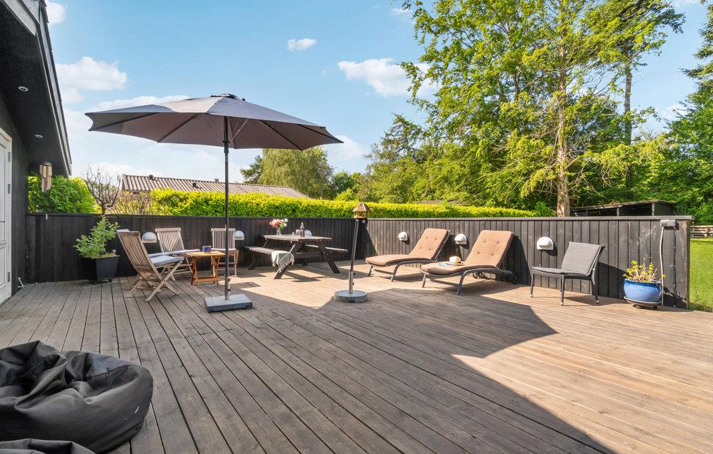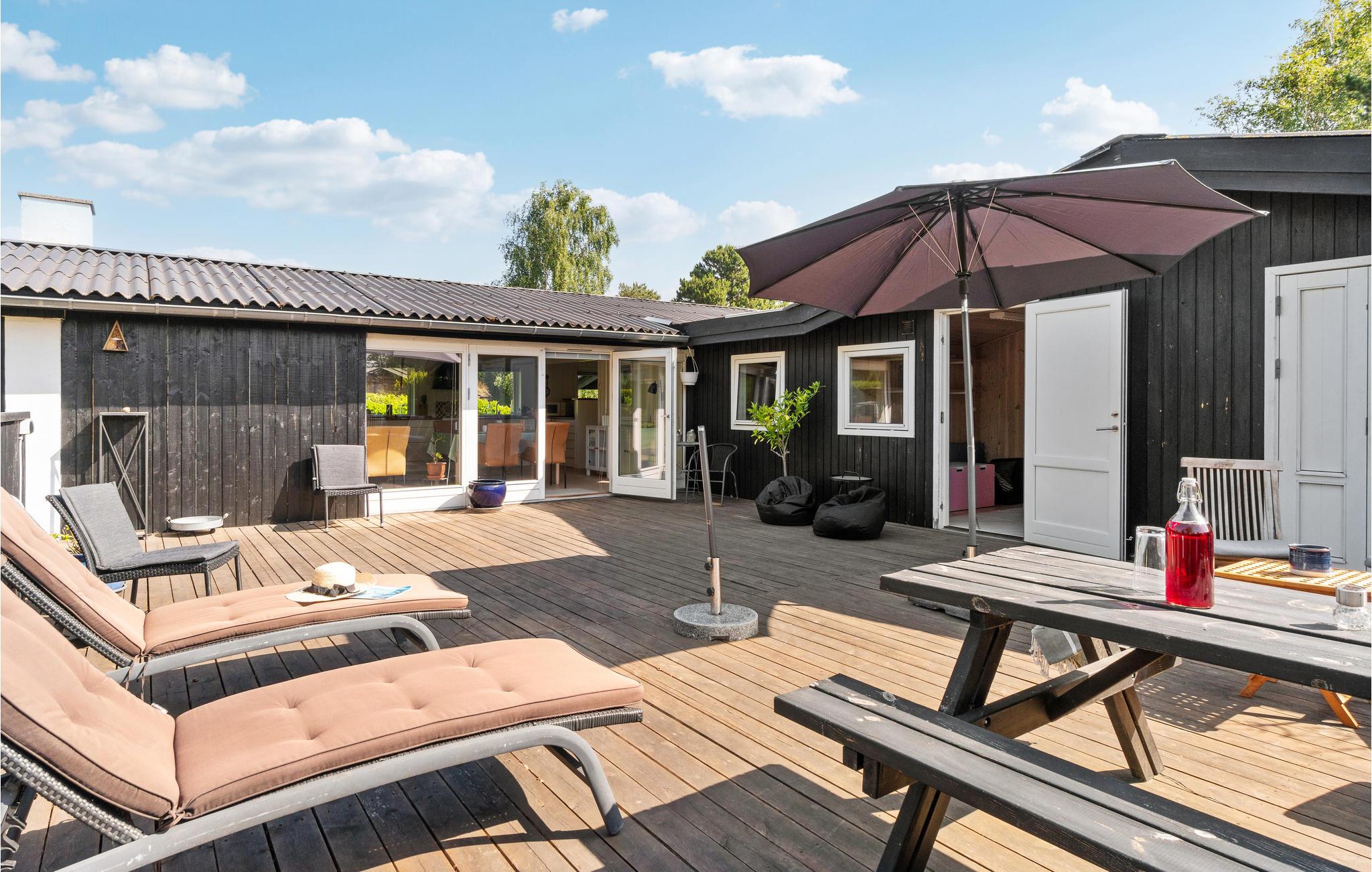 Dejligt børnevenligt feriehus med stor terrasse tæt på stranden i Smidstrup.