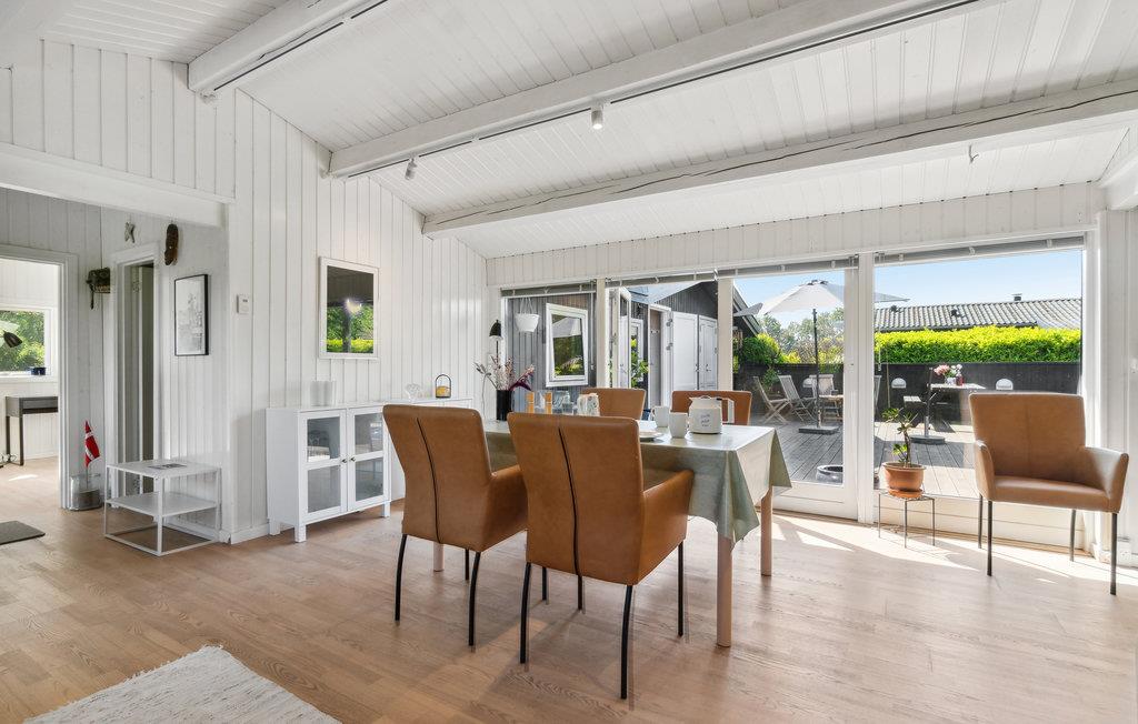 Dette indbydende og børnevenlige feriehus i Smidstrup ligger i gåafstand fra havet og inviterer til strandskæg for hele familien. Lyse værelser, hjemlig indretning og et stort veludstyret køkken skaber de ideelle rammer for en afslappende ferie. Gå fra stress til ro, for her er der plads til en masse aktiviteter og til at gøre ingenting. I sætter tempoet! Nyd udsigten over haven, mens I spiser. På kølige dage kan I tænde op i brændeovnen og spille matador. Huset tilbyder en skøn terrasse og en stor græsplæne, der er helt perfekt til fodbold og meget mere. De små kan gynge eller lege i legehuset, mens I sludrer eller soler jer på terrassen. Hvad med lidt frisk frugt under parasollen? Om aftenen kan I nyde lækkerier fra kuglegrillen.