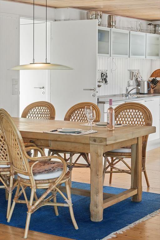 Træd ind i en oase af hygge og afslapning. Den lyse og indbydende opholdsstue er hjertet af huset, hvor du kan nyde hyggelige stunder med familie og venner. Stuen har en behagelig sofa, perfekt til afslappede aftener, og en spiseplads, hvor I kan samles omkring måltiderne. Det åbne køkken er fuldt udstyret med alt, hvad du behøver for at tilberede lækre retter.