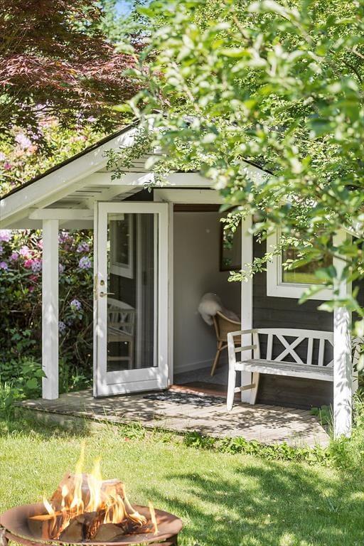 I haven finder du også et shelter og en bålplads, der indbyder til hyggelige aftener med snobrød og stjernekiggeri.