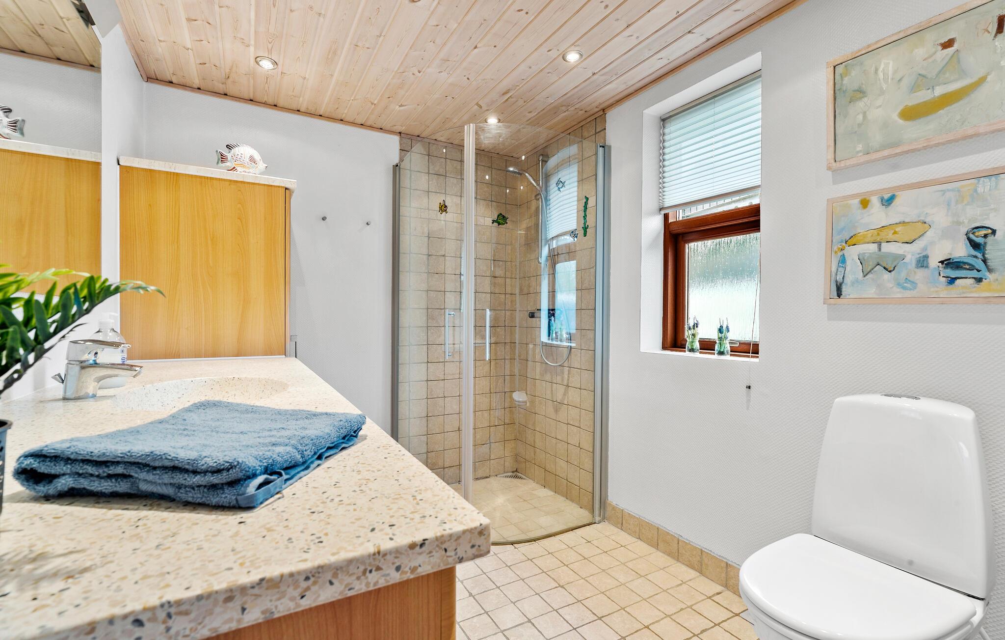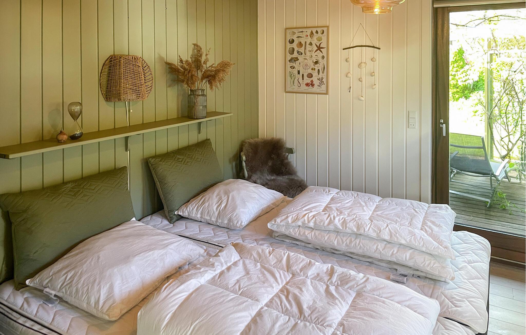 I dette hus i anden række til havet får I nogle helt særlige rammer og badehotelsstemning til at nyde jeres feriedage. Huset er personligt, indbydende og har en skøn, varm atmosfære. Begynd dagene med morgenmad i det hyggelige opholdsrum, hvor I får et fantastisk lys ind fra vinduerne ud mod haven. Tænd op i brændeovnen på en kølig dag og nyd den rolige stemning. Efter en lang dag med oplevelser kan I læne jer tilbage i sofahjørnet og kigge ud på de grønne omgivelser. Giv jer i kast med feriemåltiderne i det åbne køkken og dæk op ved spisepladsen indendørs, udenfor på terrassen eller i udestuen. Sæt jer på første sal med en god kop kaffe eller en feriebog og nyd udsigten over havet.