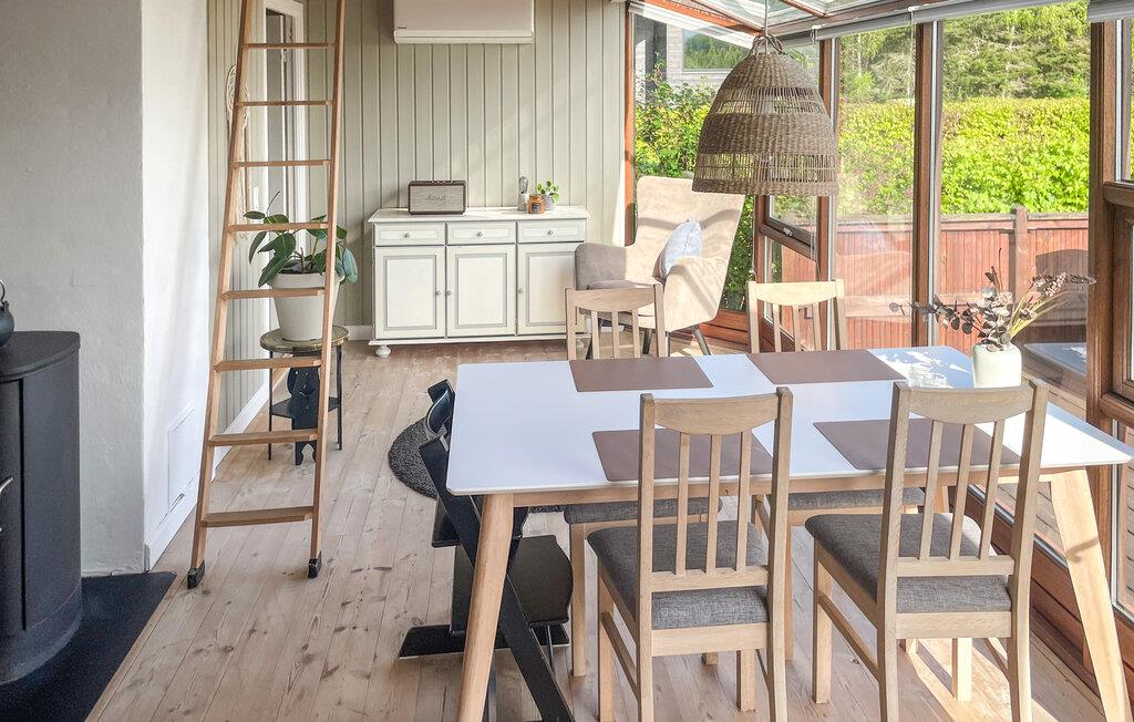 I får nogle helt særlige rammer til at nyde jeres feriedage i dette hus. Huset er personligt, indbydende og har en skøn, varm atmosfære. Begynd dagene med morgenmad i det hyggelige opholdsrum, hvor I får et fantastisk lys ind fra vinduerne ud mod haven. Her kan I også tænde op i brændeovnen på en kølig dag og gør det ekstra stemningsfuldt. Efter en lang dag med oplevelser kan I læne jer tilbage i sofahjørnet og kigge ud på de grønne omgivelser. Giv jer i kast med feriemåltiderne i det åbne køkken og dæk op ved spisepladsen indendørs og udenfor på terrassen. På første sal kan I sætte jer med en god kop kaffe eller en feriebog og nyde udsigten.
