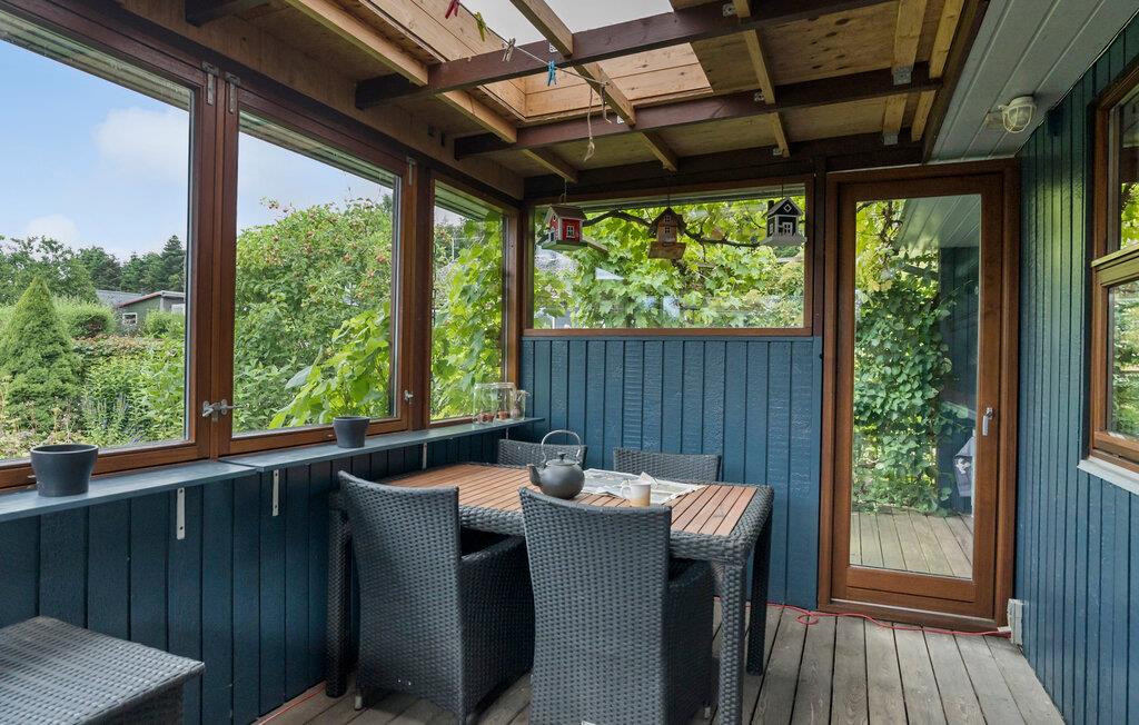 Vend tilbage til sommerhuset om aftenen og nyd den grønne have. I kan også finde jer til rette i udestuen med et glas vin og puste ud oven på dagens eventyr.