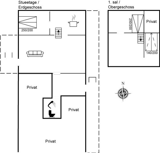 Ferielejligheden egner sig til 4 voksne og 2 børn. Ferieboligen er på 80 m2 i to plan og bygget i 1850. I 1982 gennemgik lejligheden en totalrenovering. I den hyggelige stue er der foruden brændeovn også TV, DVD, Radio og stereoanlæg samt CD-afspiller. Der er mindst 4 danske og 4 tyske kanaler til rådighed. Sovepladserne fordeler sig på 2 værelser, begge med dobbeltseng. Endvidere findes der 2 sovepladser på en dobbelt sovesofa på reposen. Barneseng, barnestol og puslebord til rådighed. Køkkenet er udstyret med køleskab og fryser (25 liter), keramiske kogeplader, miniovn samt opvaskemaskine. Badeværelse med bruseniche og toilet.