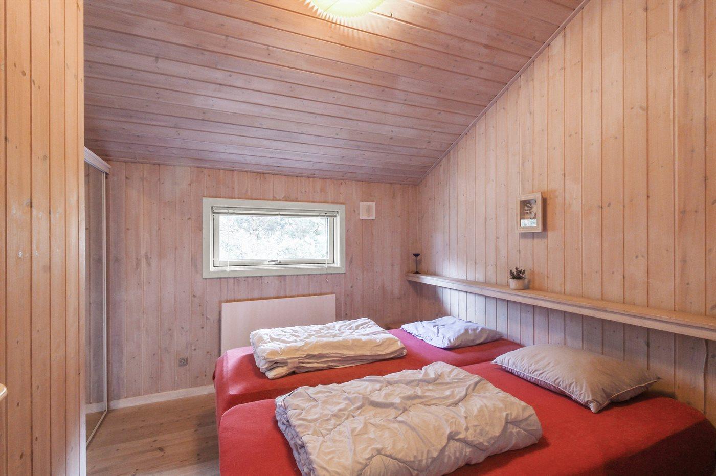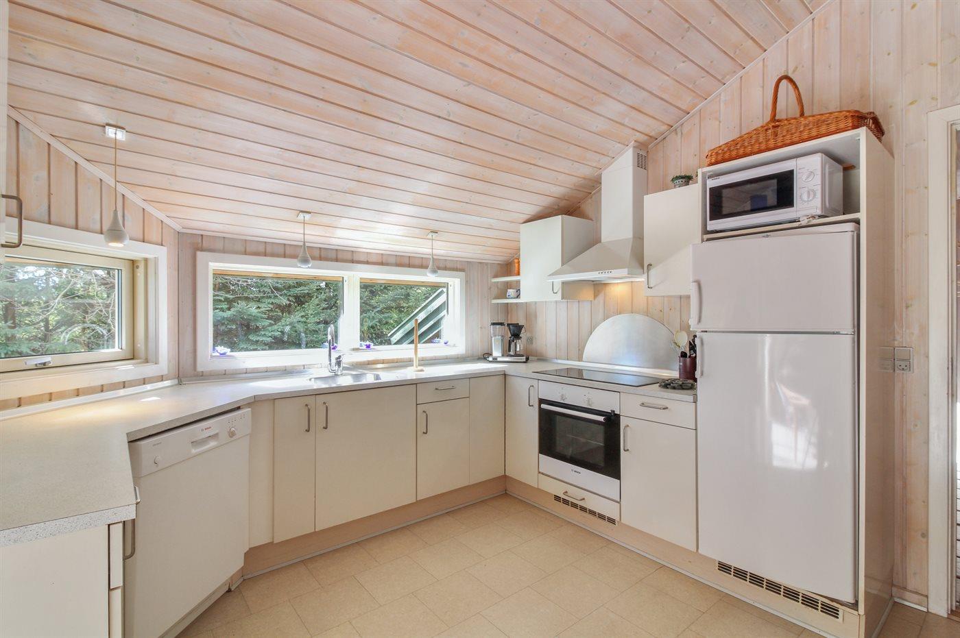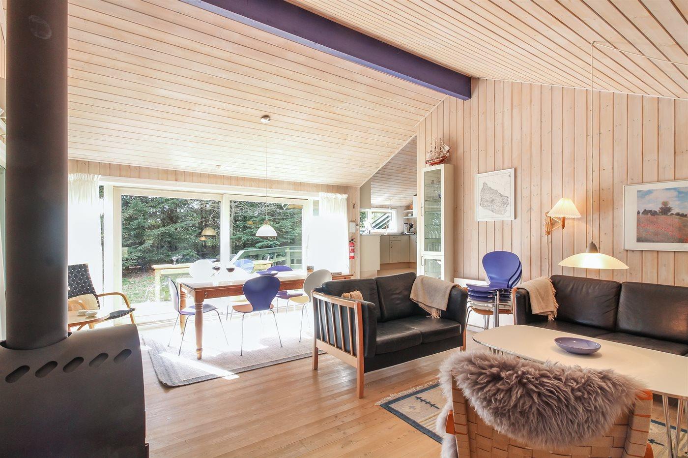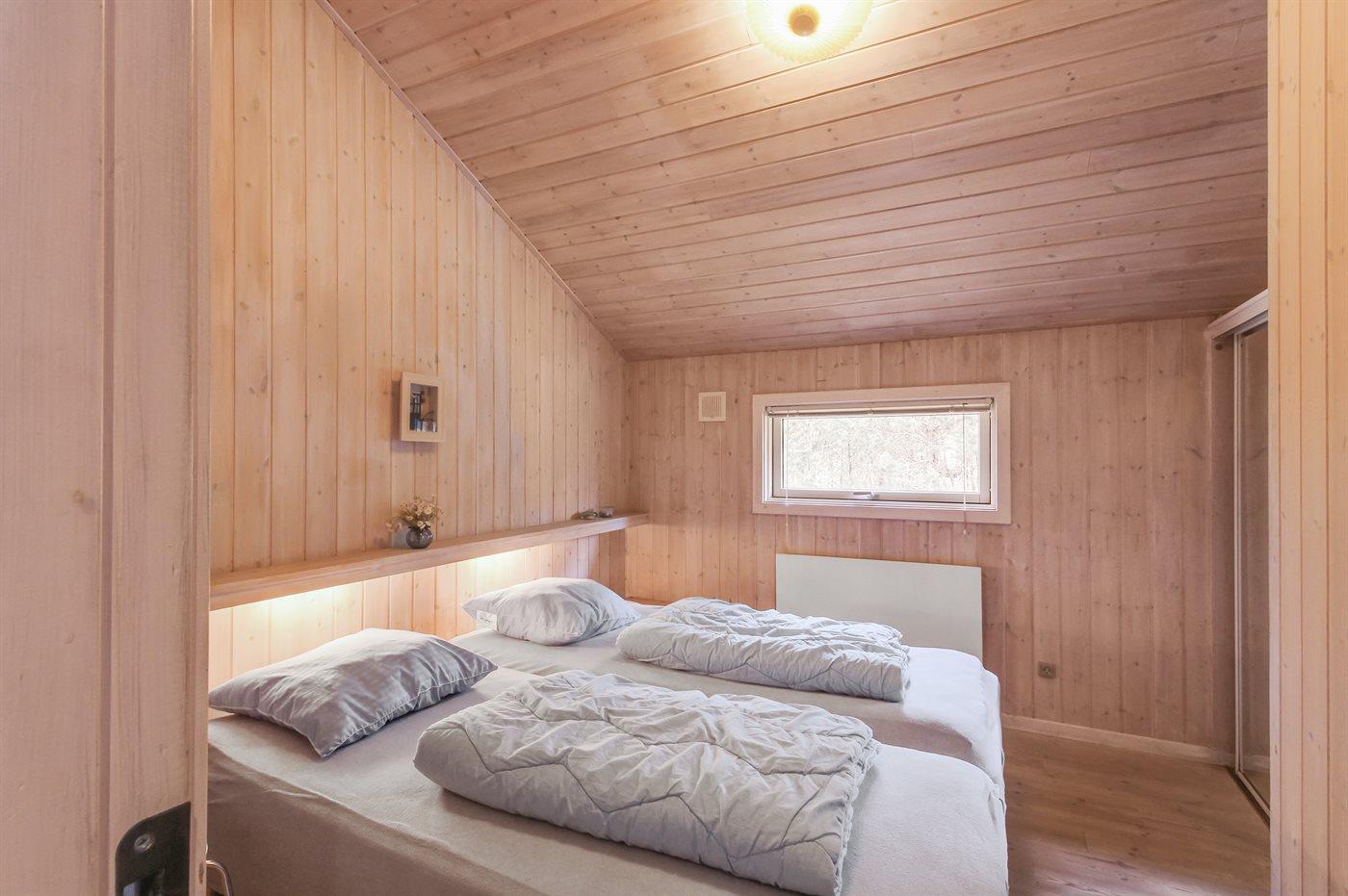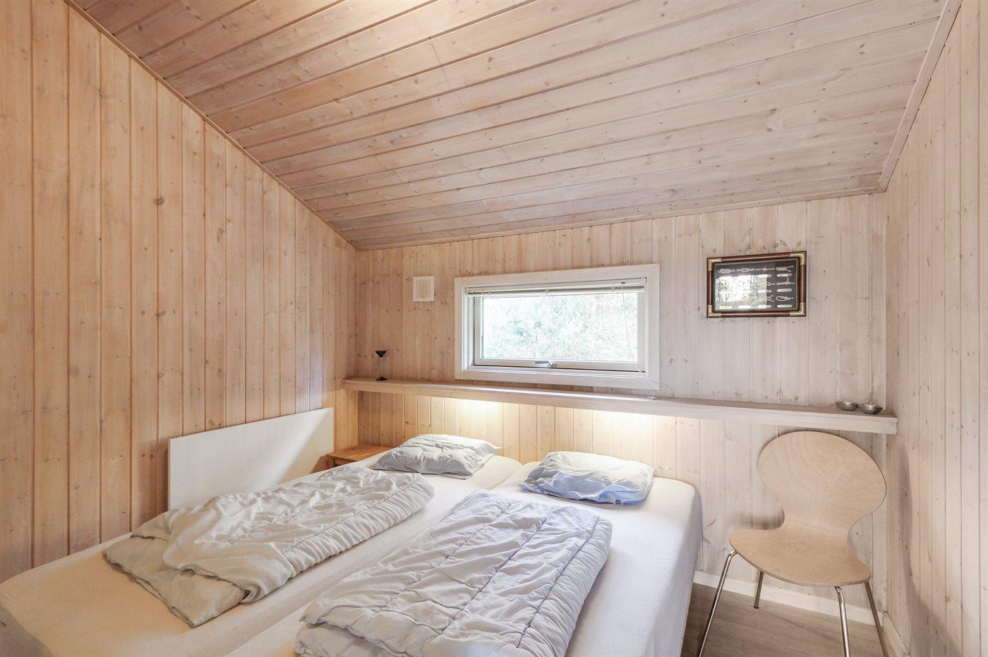 Dette dejlige, rummelige sommerhus i træ er bygget i 1996 på en skøn naturgrund, kun 400 m fra stranden. Til huset hører åben terrasse med en overdækket side, samt skur med havemøbler. Gulvene er beklædt med ludbehandlet fyrretræ i stue og soverum. Klinkegulv i gang samt vådrum. Væggene og de skrå lofter er beklædt med lyst træ. Skøn spa-afdeling med opvarmet klinkegulv, bruseniche og solarium, samt direkte adgang til husets sauna. Dejligt badeværelse med bruseniche og toilet. Desuden gæstetoilet. Depot/vaskerum med vaskemaskine og tørretumbler. Køkkenafdelingen er bl.a. udstyret med køle-fryseskab, opvaskemaskine, mikrobølgeovn, keramisk kogeplade med fire kogefelter og varmluftovn. Den hyggelige opholdsstue indeholder brændeovn, stereoanlæg med CD-afspiller og fladskærms-TV med parabol (digital). Desuden gratis internetforbindelse til rådighed (computer skal medbringes). Huset har 4 gode soverum; 3 med dobbeltseng samt 1 med 2 køjesenge. Desuden 2 sovepladser i alkove i opholdsstuen. Carport til rådighed. Et attraktivt, veludstyret sommerhus på alle årstider.