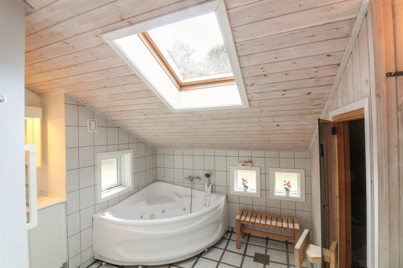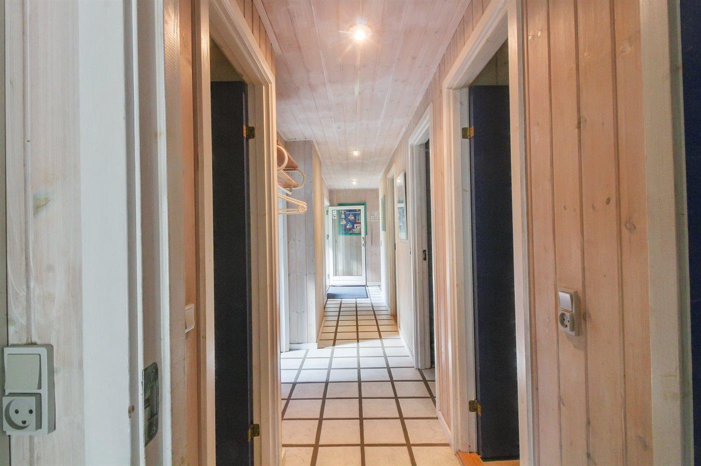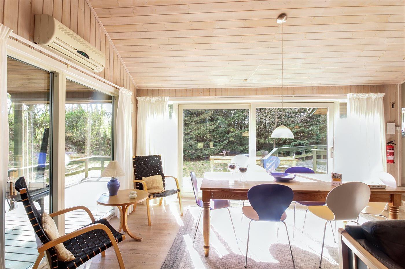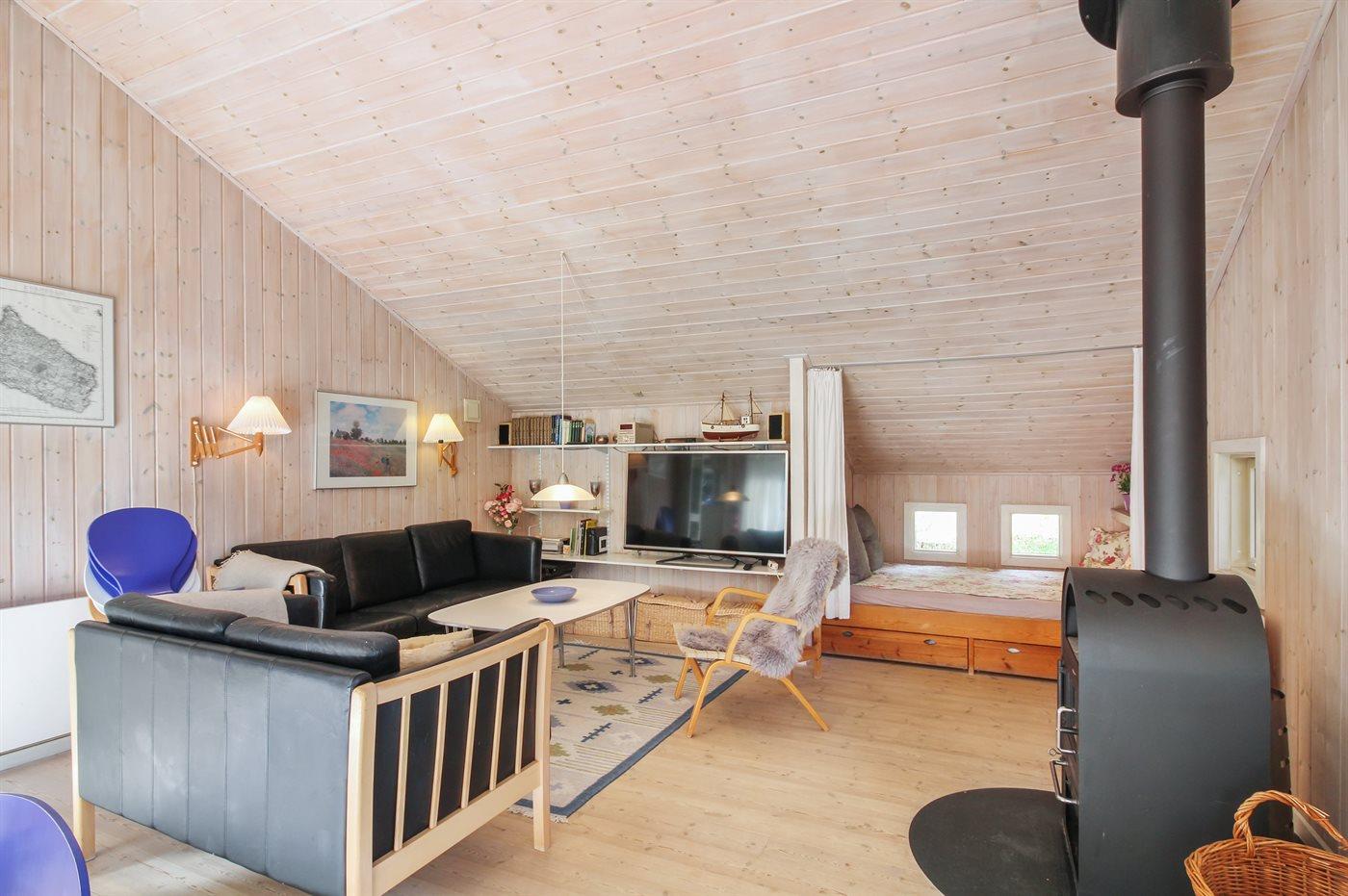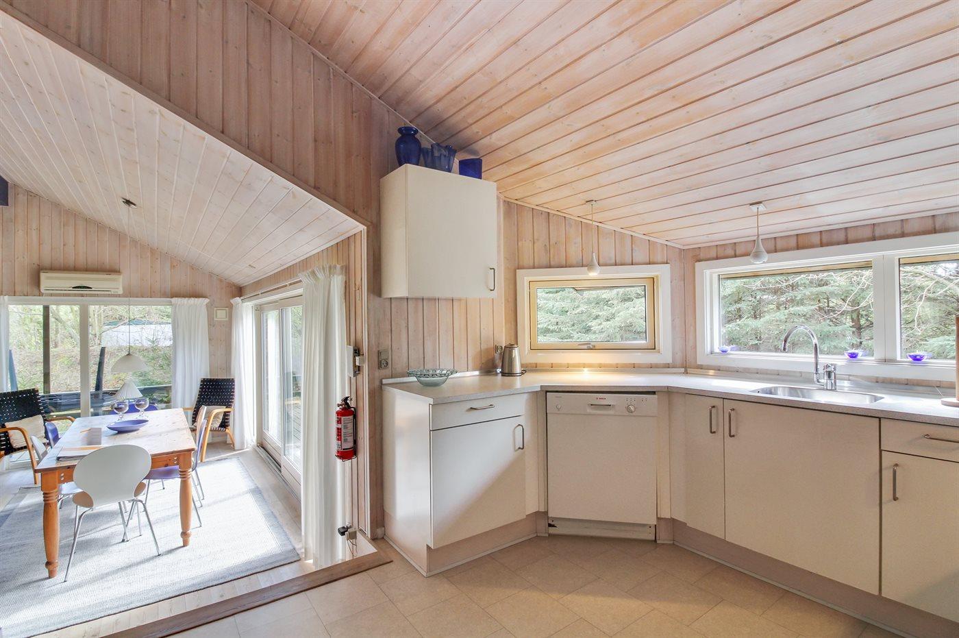 Dette dejlige, rummelige sommerhus i træ er bygget i 1996 på en skøn naturgrund, kun 400 m fra stranden. Til huset hører åben terrasse med en overdækket side, samt skur med havemøbler. Gulvene er beklædt med ludbehandlet fyrretræ i stue og soverum. Klinkegulv i gang samt vådrum. Væggene og de skrå lofter er beklædt med lyst træ. Skøn spa-afdeling med opvarmet klinkegulv, bruseniche og solarium, samt direkte adgang til husets sauna. Dejligt badeværelse med bruseniche og toilet. Desuden gæstetoilet. Depot/vaskerum med vaskemaskine og tørretumbler. Køkkenafdelingen er bl.a. udstyret med køle-fryseskab, opvaskemaskine, mikrobølgeovn, keramisk kogeplade med fire kogefelter og varmluftovn. Den hyggelige opholdsstue indeholder brændeovn, stereoanlæg med CD-afspiller og fladskærms-TV med parabol (digital). Desuden gratis internetforbindelse til rådighed (computer skal medbringes). Huset har 4 gode soverum; 3 med dobbeltseng samt 1 med 2 køjesenge. Desuden 2 sovepladser i alkove i opholdsstuen. Carport til rådighed. Et attraktivt, veludstyret sommerhus på alle årstider.