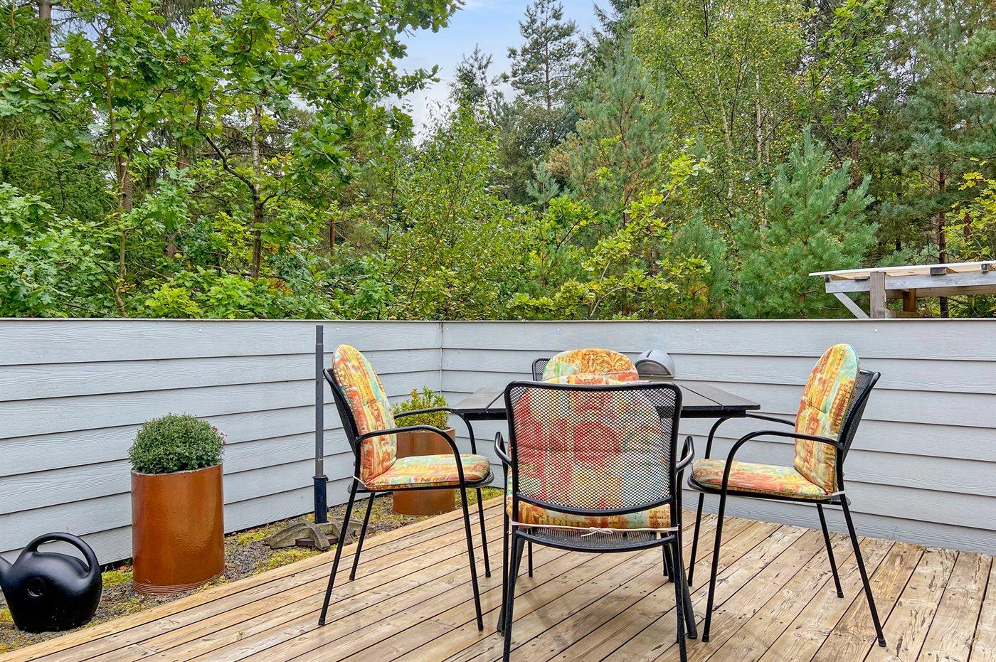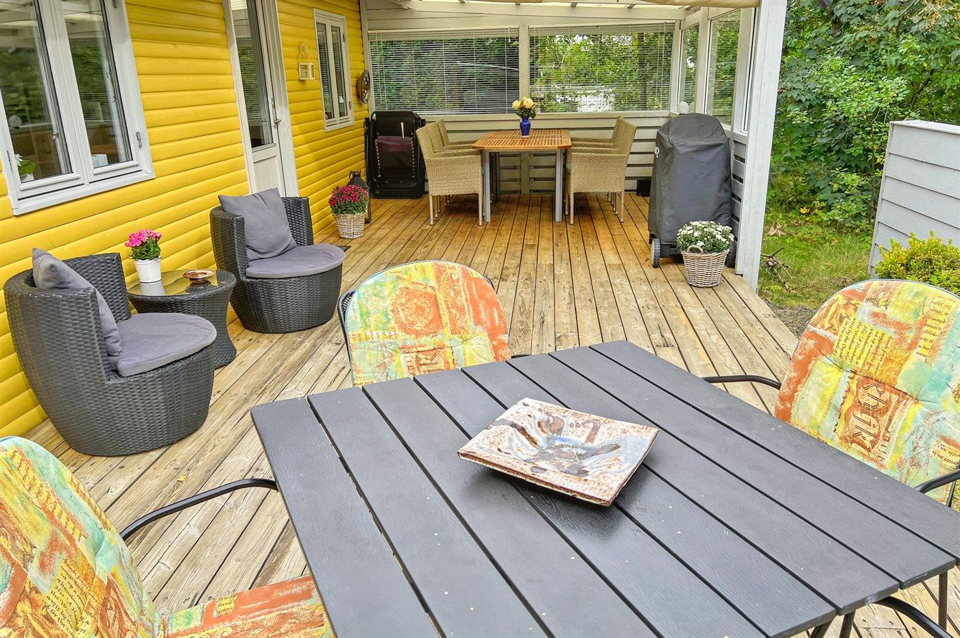 Herligt lille sommerhus i træ, hvor der ved indretningen er lagt vægt på hygge og velvære. Til huset hører et skønt terrasseareal med havemøbler, som indbyder til mange timer i det fri - i sær om aftenen vil I sætte pris på den del af terrassen, som er overdækket og kan lukkes til.
