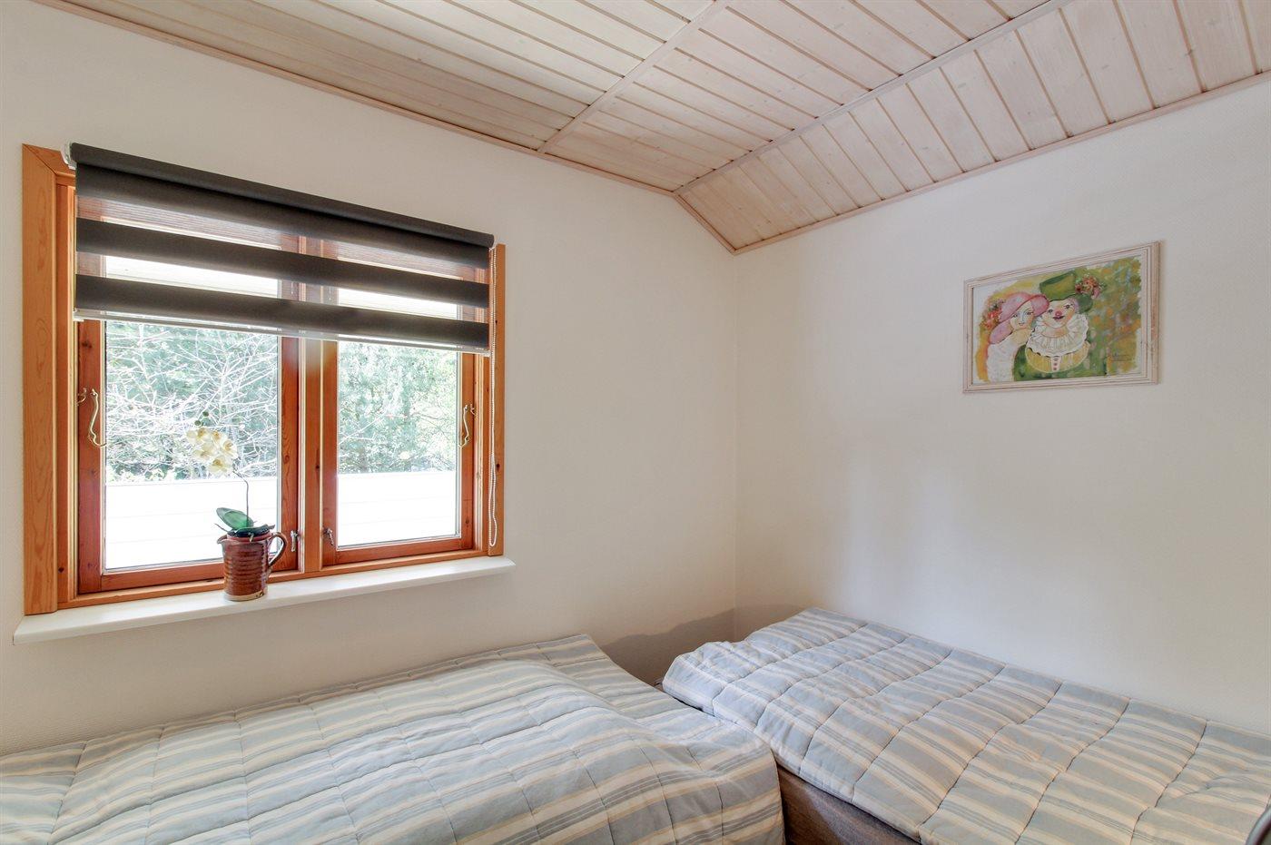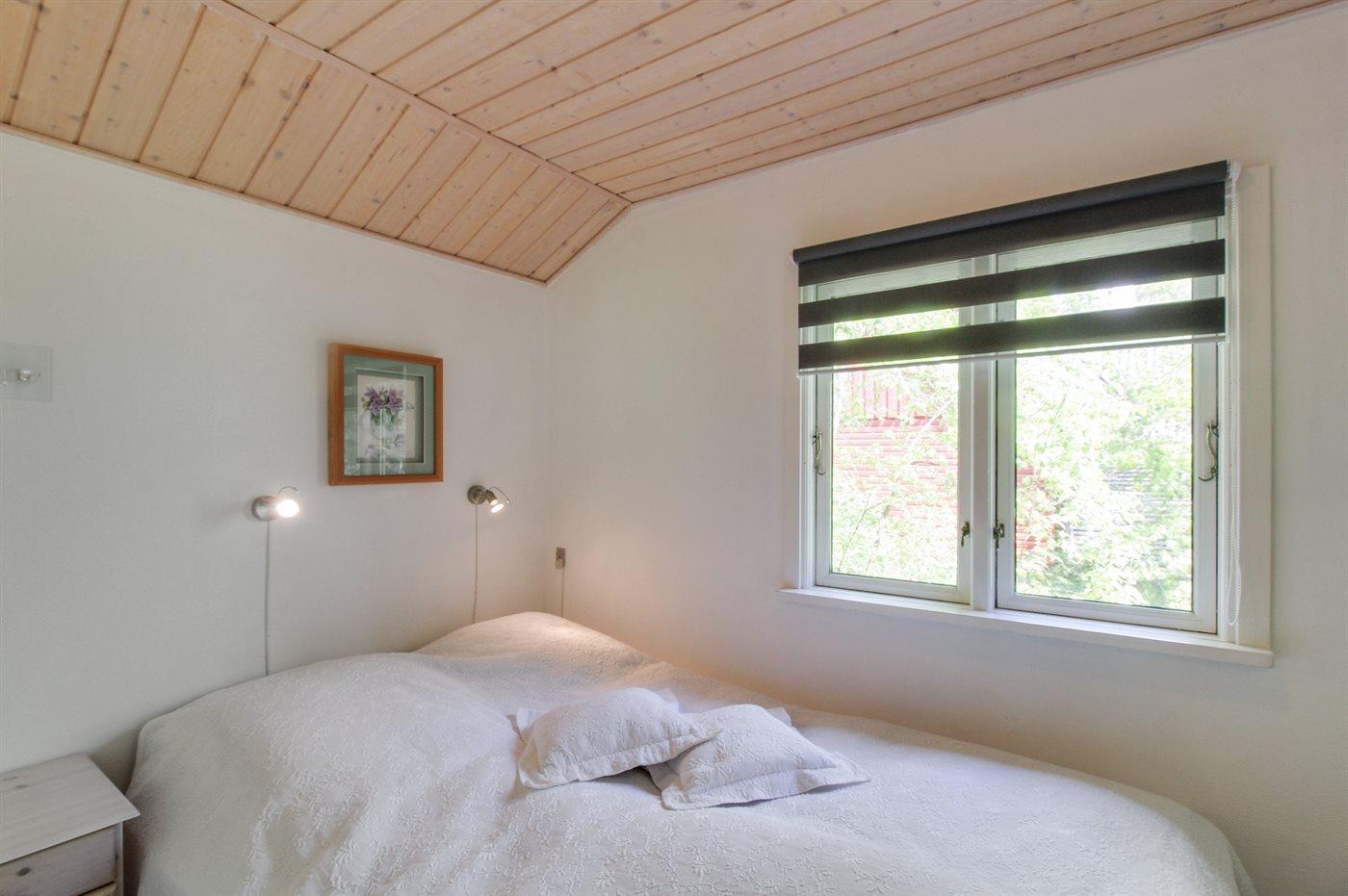 Sovepladserne fordeler sig på 2 værelser; 1 med dobbeltseng og 1 med 2 enkeltsenge. Badeværelse med gulvvarme og bruseniche. Til de mindste feriegæster findes der høj barnestol. Carport på grunden.