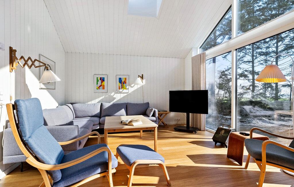 Dette indbydende hus byder jer velkommen meget tæt på stranden og er det ideelle sted for en afslappende pause med skønne dage ved havet og oplevelser rundt på øen. Hyg jer i sofaen, læs i fred og ro, og nyd den betagende udsigt gennem de store panoramavinduer. Læg planer for jeres næste udflugter over fælles måltider, og nyd samværet i stilfulde rammer.