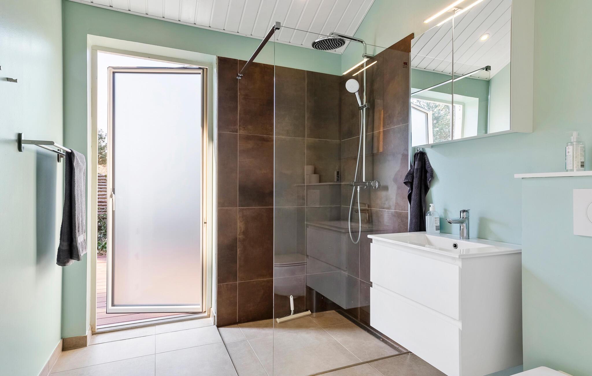 Start dagen med en kop kaffe og den flotte udsigt over havet på terrassen, omgivet af træer, der skaber en naturlig afskærmning af grunden, eller slut en oplevelsesrig dag af med lækker mad fra grillen.