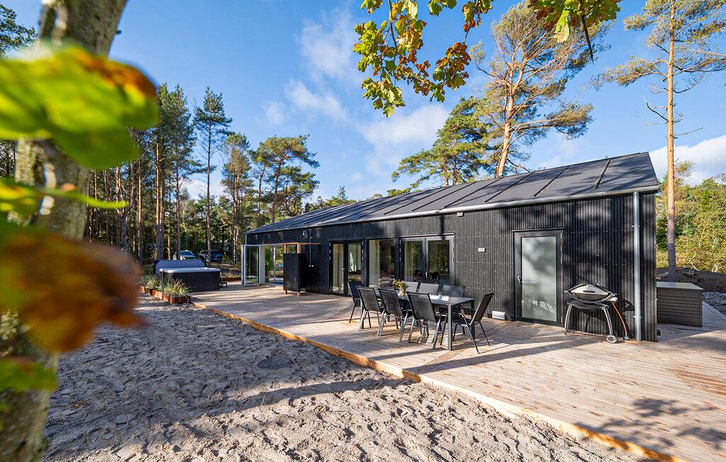 Moderne feriehus nær strand med pool, sauna og udendørs spa i naturskønne Snogebæk på Bornholm.