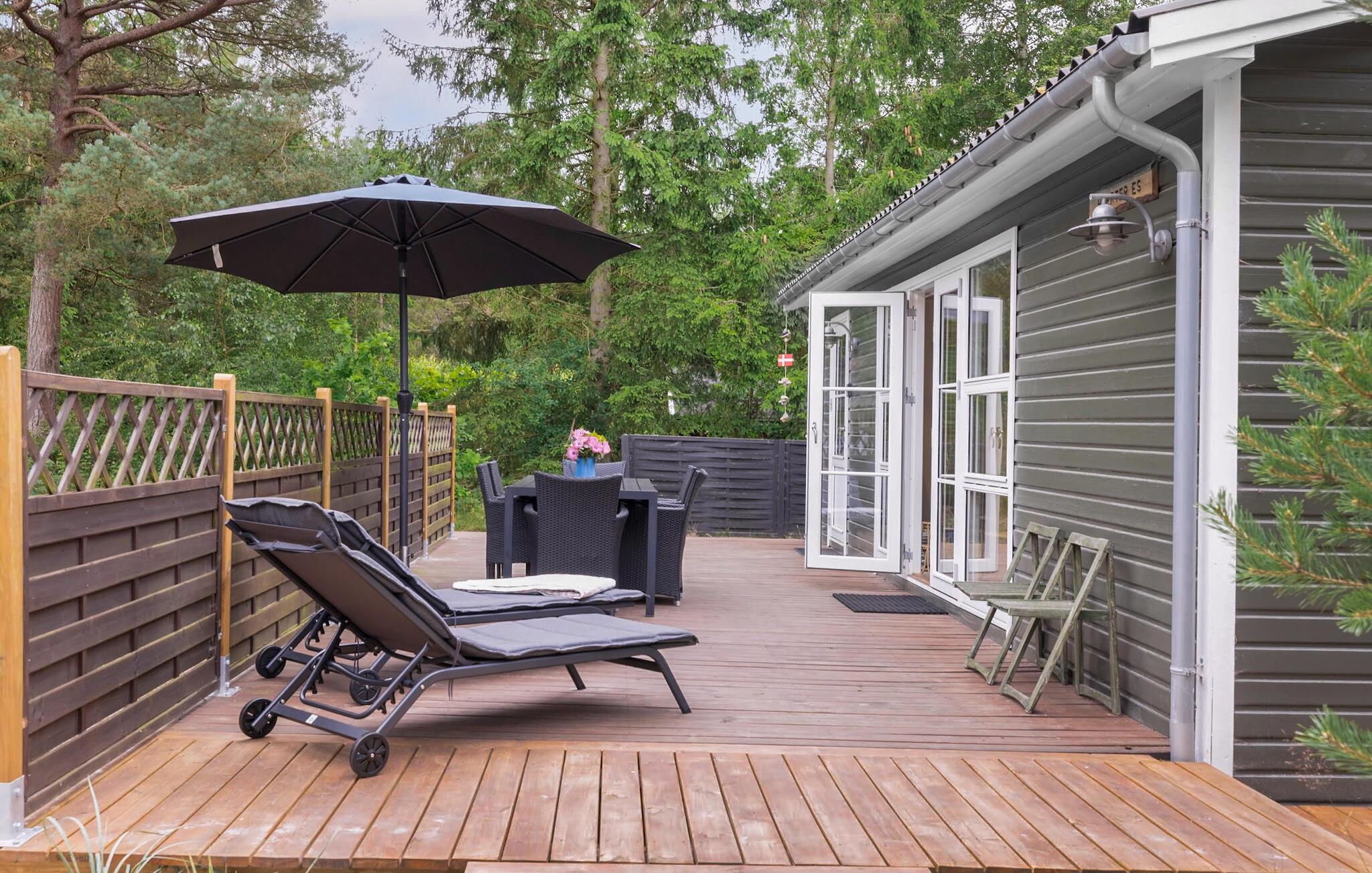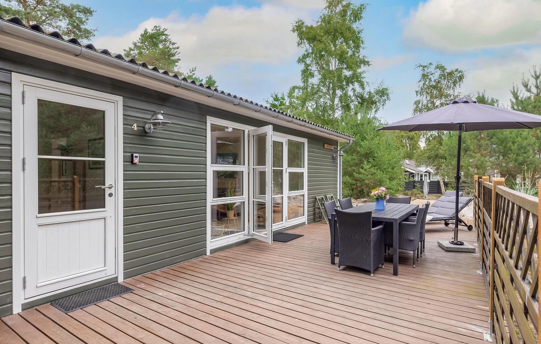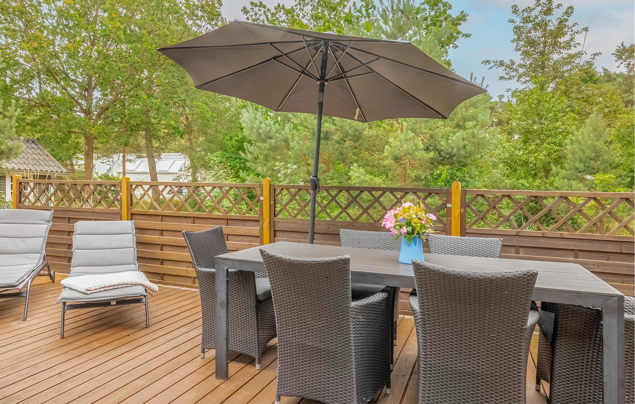 Hyggeligt sommerhus nær Snogebæk med stor terrasse, tæt på strand og cykelveje, ideelt til en afslappende ferie på Bornholm.