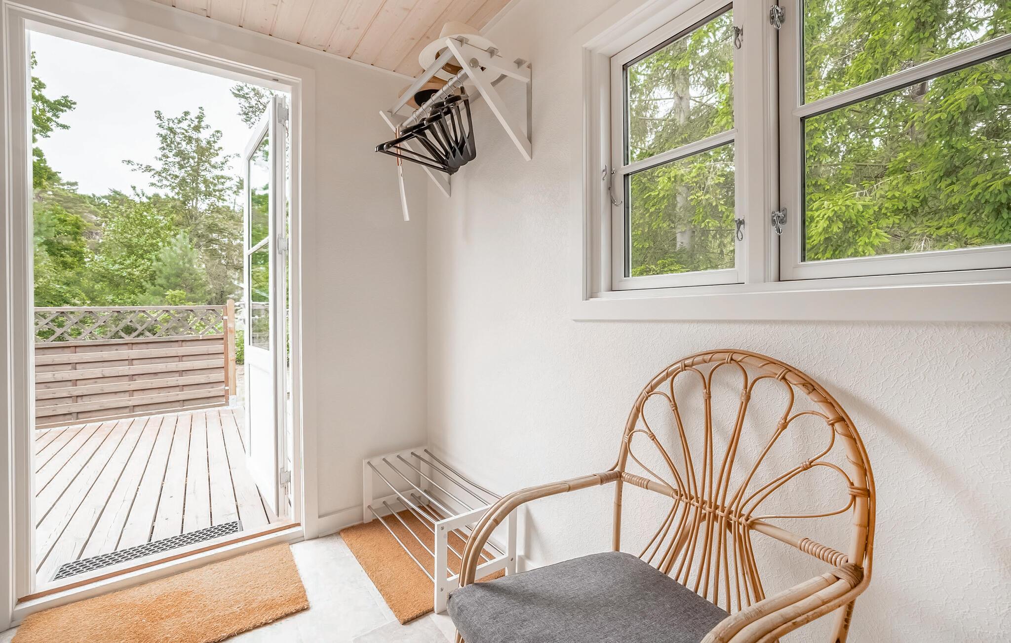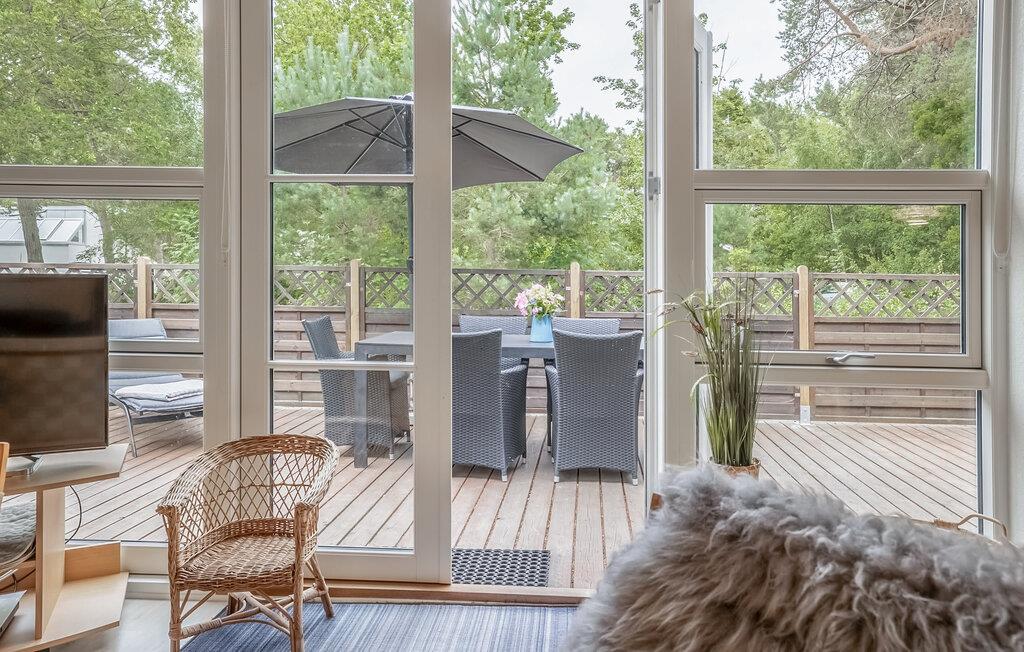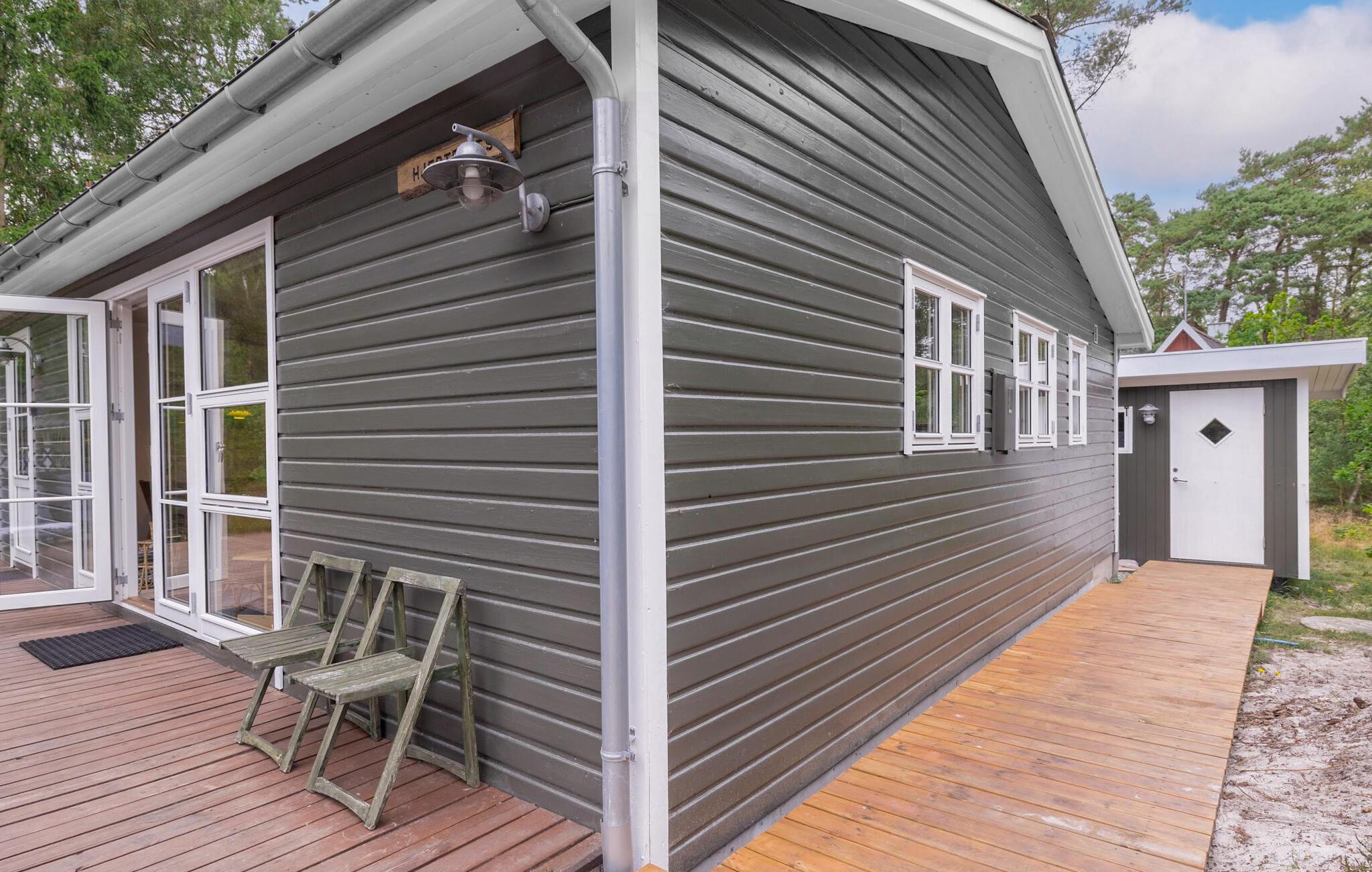 Hyggeligt sommerhus nær Snogebæk med stor terrasse, tæt på strand og cykelveje, ideelt til en afslappende ferie på Bornholm.