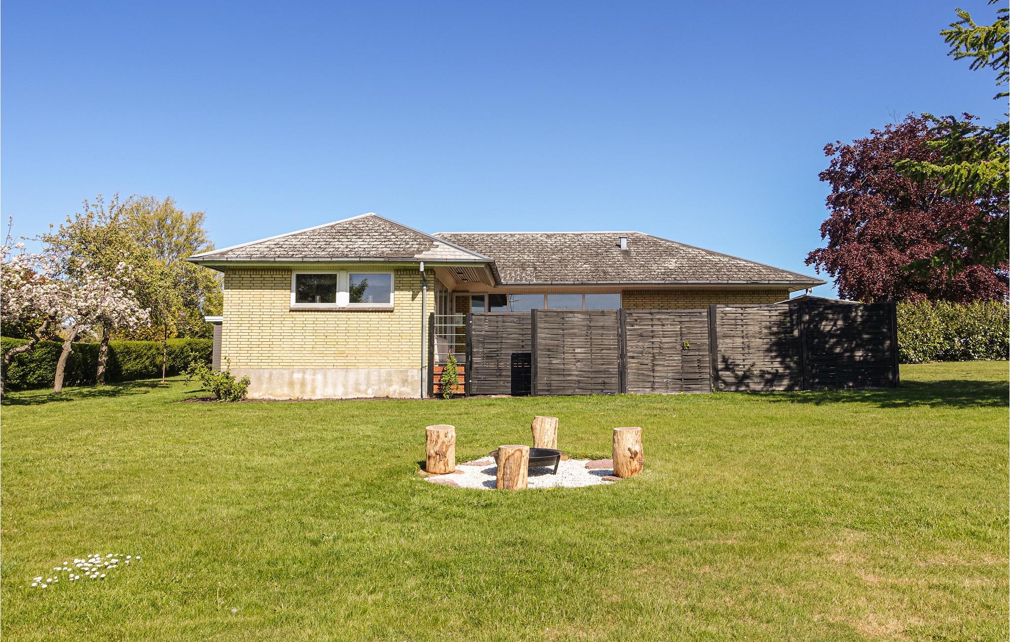 Indbydende feriehus i Snogebæk kun 700 meter fra sandstrand med stor have, bålplads og carport.