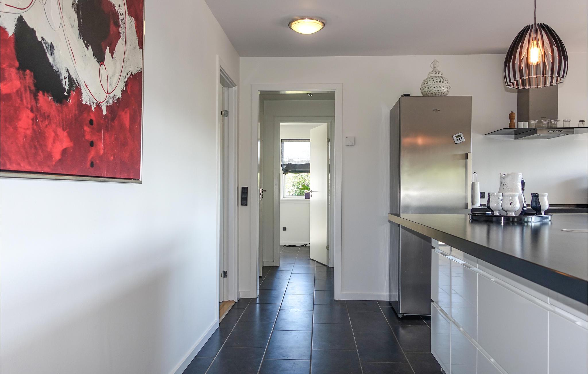 Velkommen til denne attraktive og rummelige feriebolig med gulvvarme overalt, hvilket sikrer et behageligt indeklima. Det naturlige samlingspunkt er opholdsstuen med spiseplads, hvor I kan flade ud og se fjernsyn. Store vinduer lukker dejligt meget lys ind. I det store, åbne og veludstyrede køkken er det en fornøjelse at lave mad, mens radioen spiller. Derudover består huset af tre gode soveværelser, et fint badeværelse, et gæstetoilet og et bryggers med vaskemaskine og fryser.