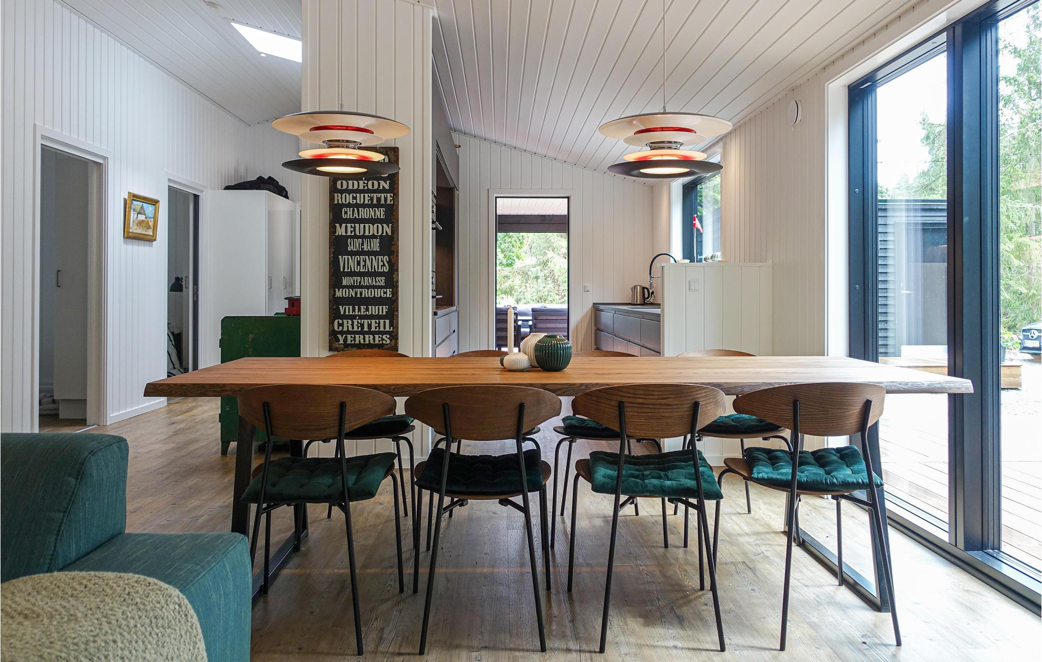 Hvis I virkelig vil forsøde jeres ferie, kan I godt begynde at glæde jer til dette luksushus. Her venter moderne interiør og en gennemført, flot stil med lækre materialer både ude og inde. I opholdsrummet kan I tilberede jeres ferieretter, lige som I ønsker dem, for I kommer ikke til at mangle udstyr. Med to ovne kan I også nemt invitere vennerne over til en stor middag, eller måske er det her, I skal holde jul i år? I stuen har I god plads omkring spisebordet, og når I skal slappe af i sofaen efter en lang gåtur ved havet. På kølige dage kan I tænde op i brændeovnen og skabe ekstra hygge.
