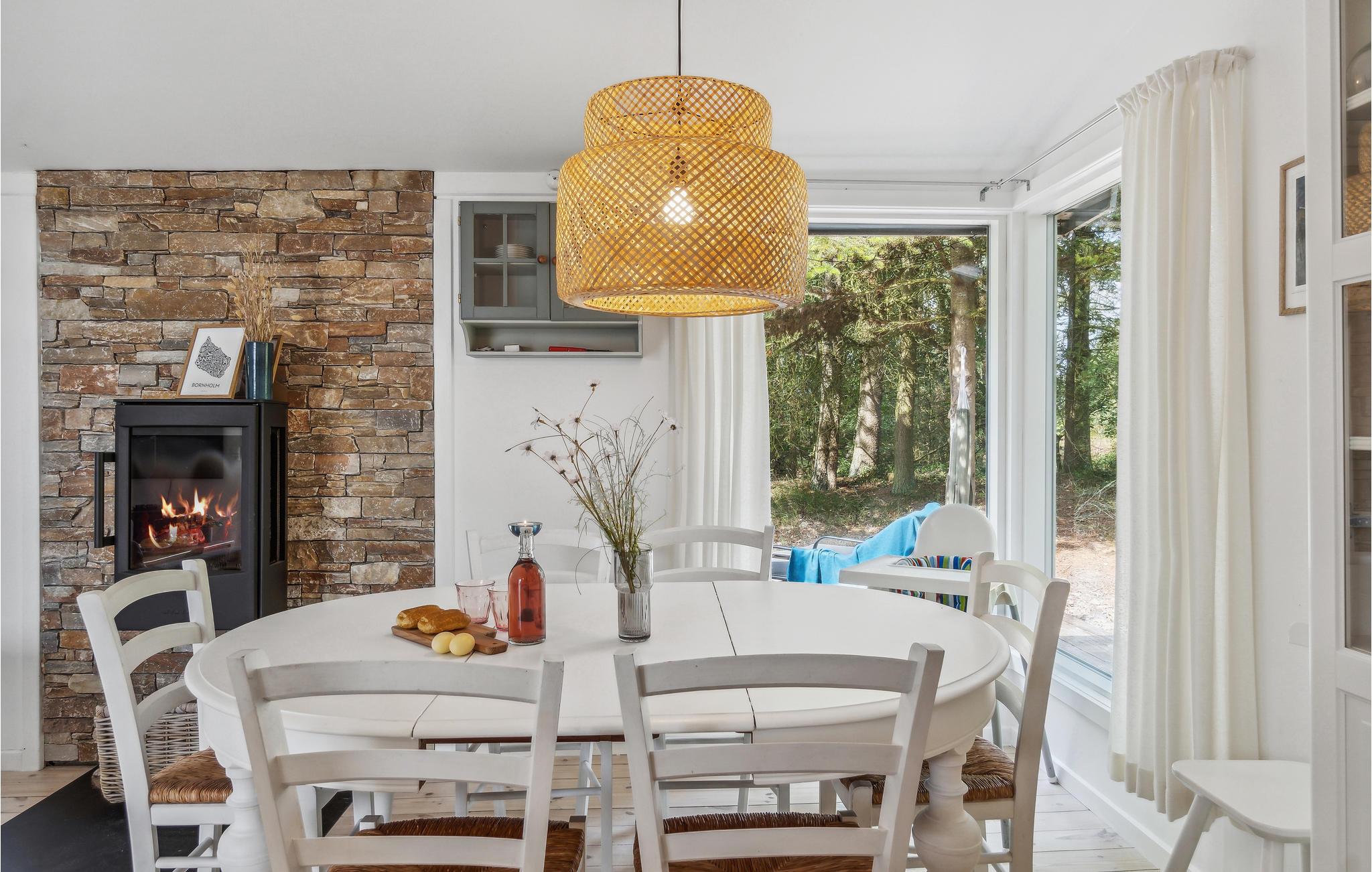 Charmerende sommerhus nær børnevenlig sandstrand og skov i Snogebæk, Bornholm, med moderne faciliteter og hyggelig udestue.