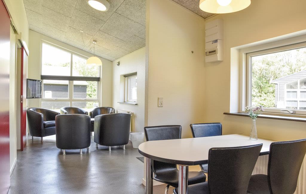 Flot fritidshus i Spjald med terrasse, adgang til idrætsanlæg og svømmehal, ideelt for aktive familier.