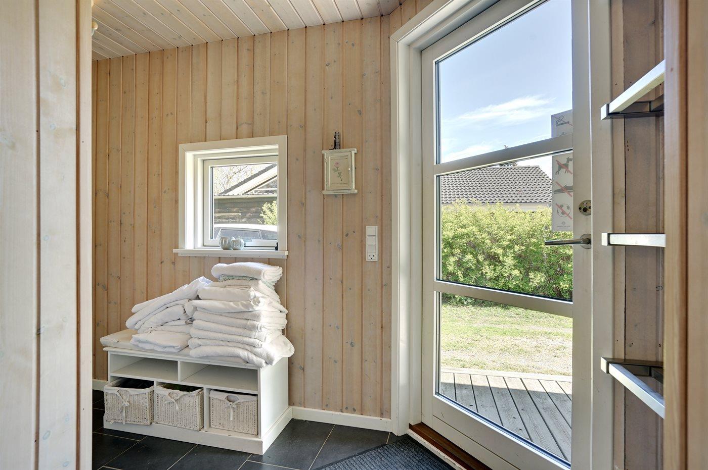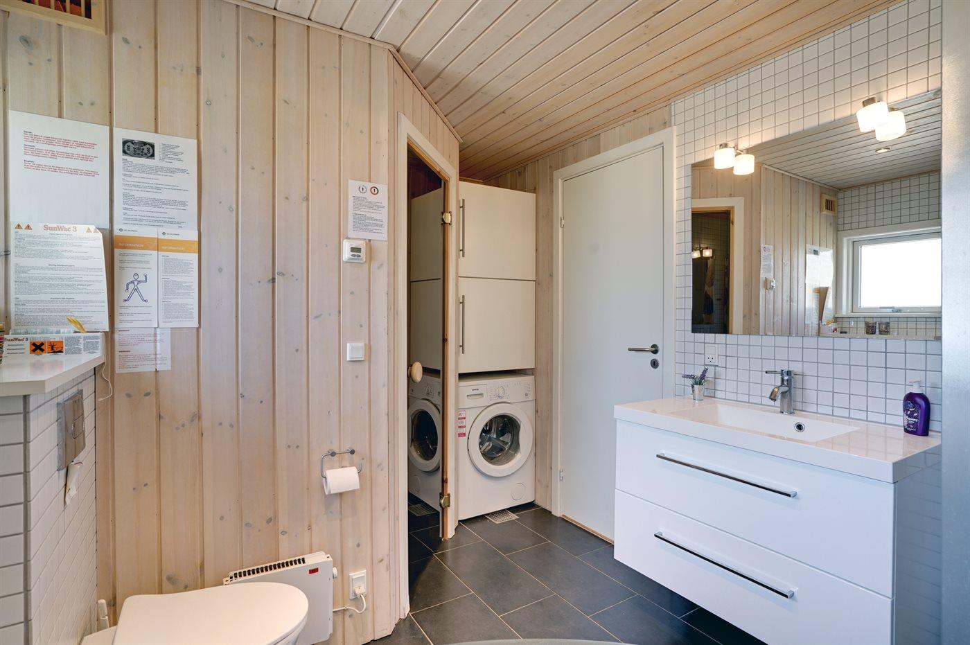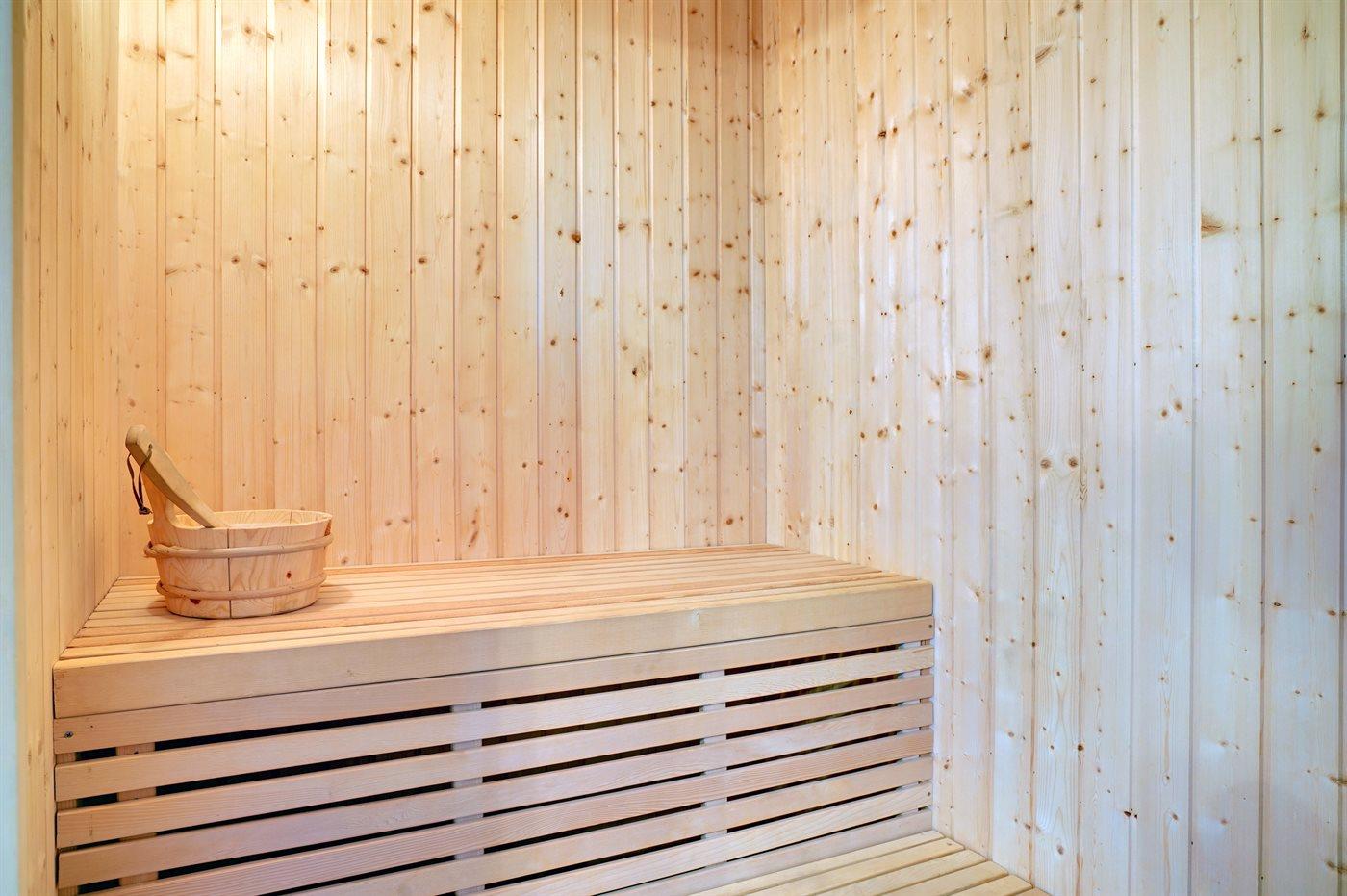 Der er 1 badeværelse med bruseniche og 1 toilet. I saunaen er der mulighed for afslapning.