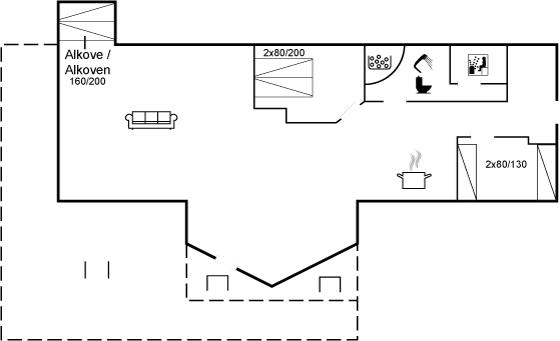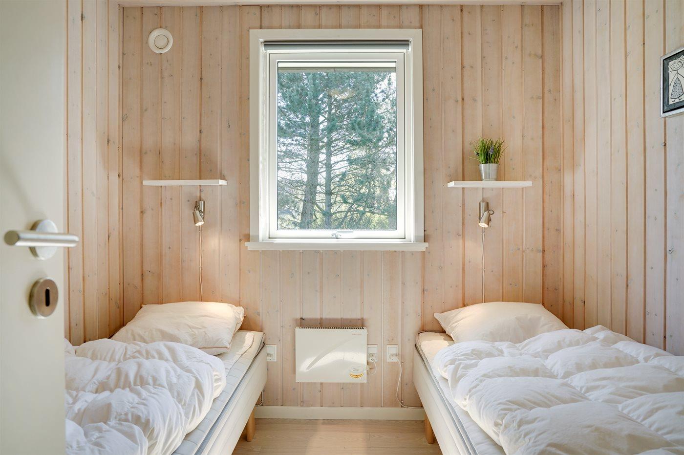 Der er i alt 2 soveværelser. Sovepladserne fordeler sig på: 2 sovepladser i dobbeltseng. 2 sovepladser i enkeltsenge. 2 sovepladser i alkove. Derudover er der 1 stk. barneseng.